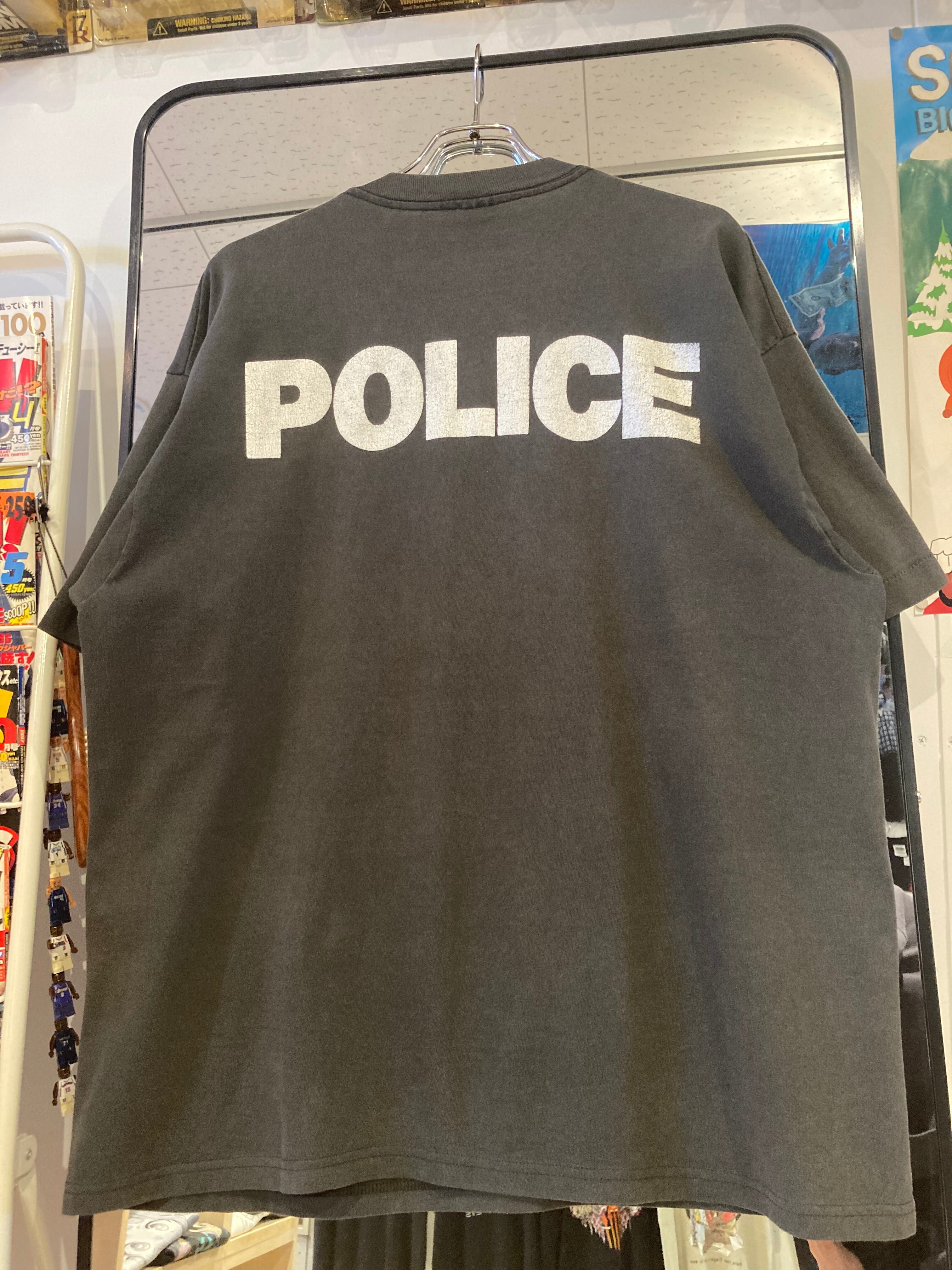 音楽は勿論、ロックTとしても不動の人気を誇るパール・ジャムの93年の2ndアルバム「Vs.」 の収録曲、W.M.A から。PEARL JAM のデザインの中でも一際異彩を放つ両面プリント。横暴な警察に対する憤りから生まれた楽曲なので、背中にはPOLICE の文字。