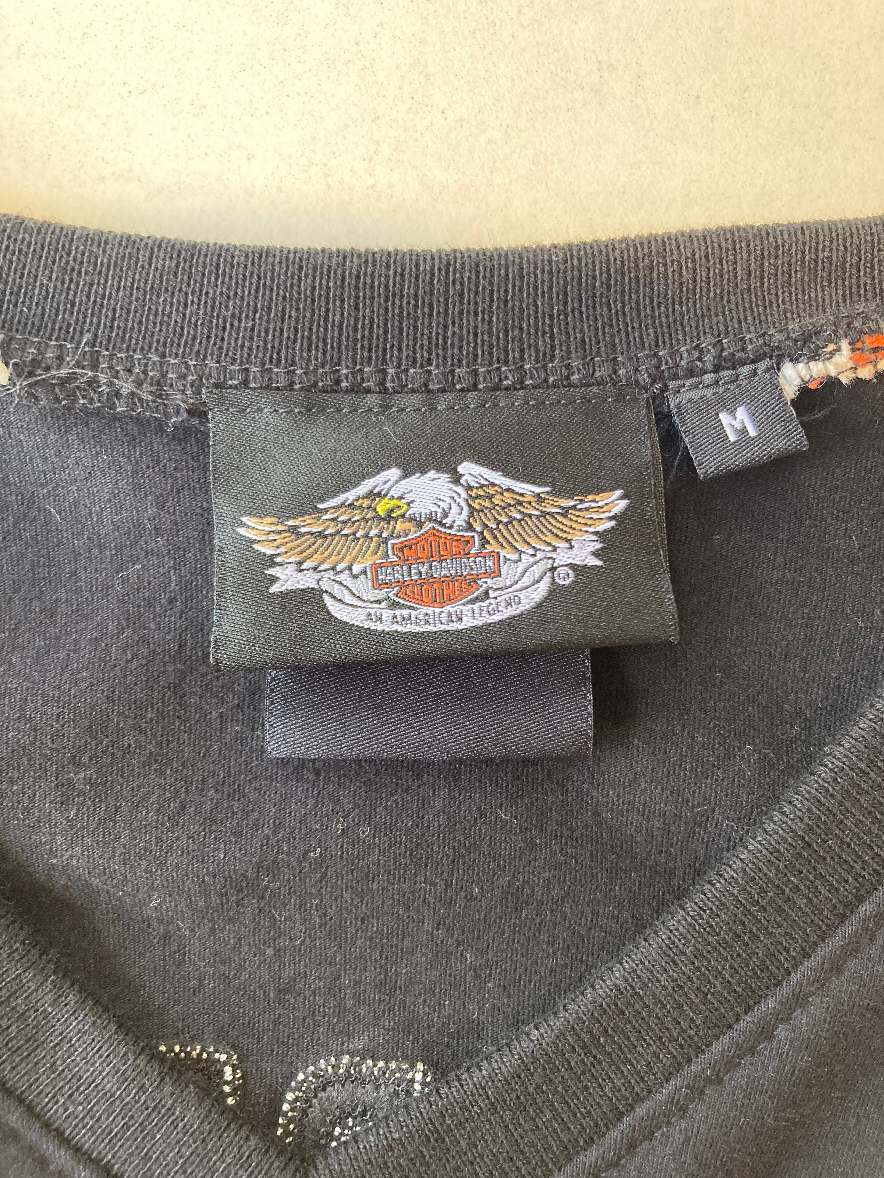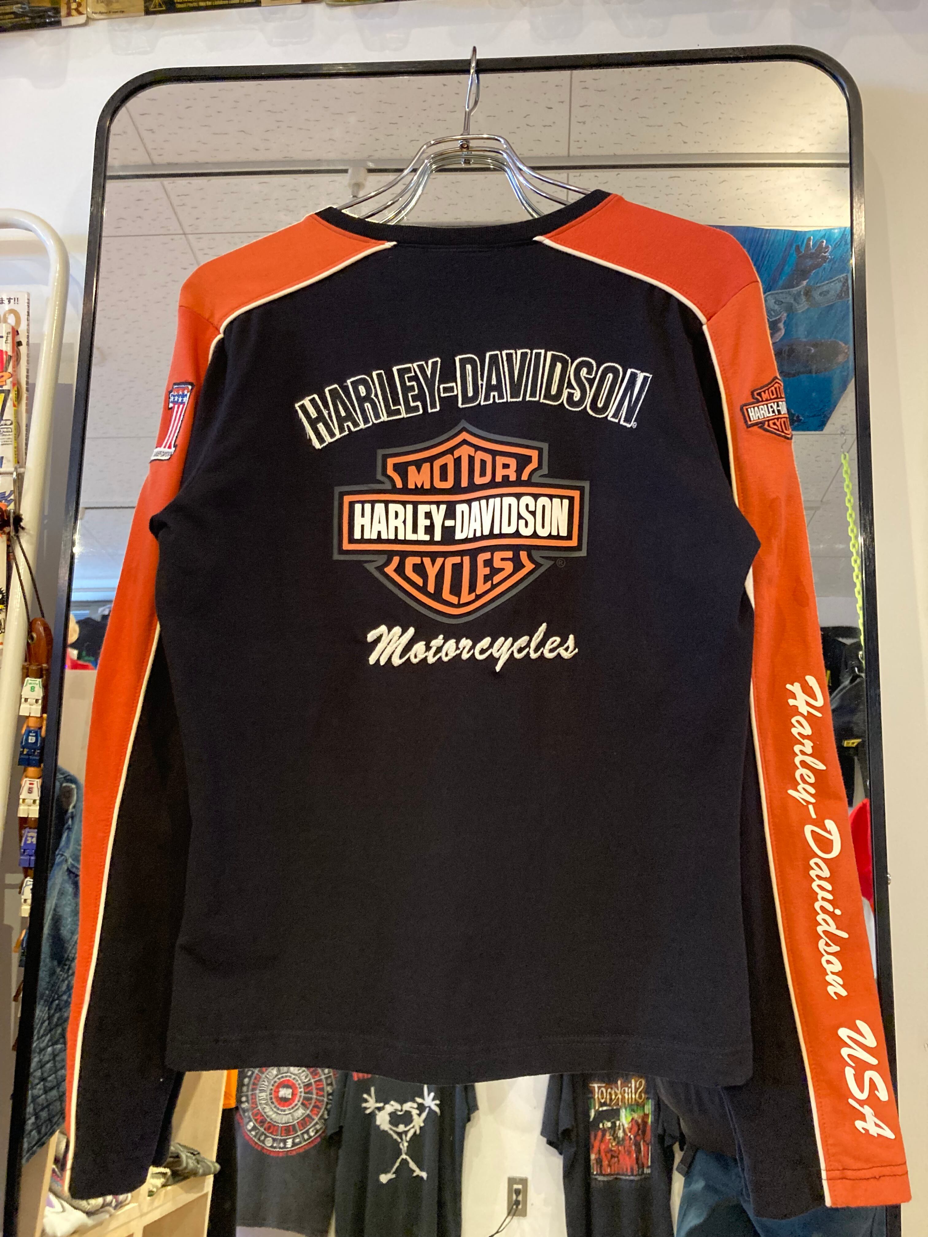 ハーレーのロンT!!ヴィンテージのハーレーTシャツは高騰していますが、新しめのコチラも負けていないフルデコタイプ。女性は勿論、Y2Kなショート丈にチャレンジしたい男性にも◎