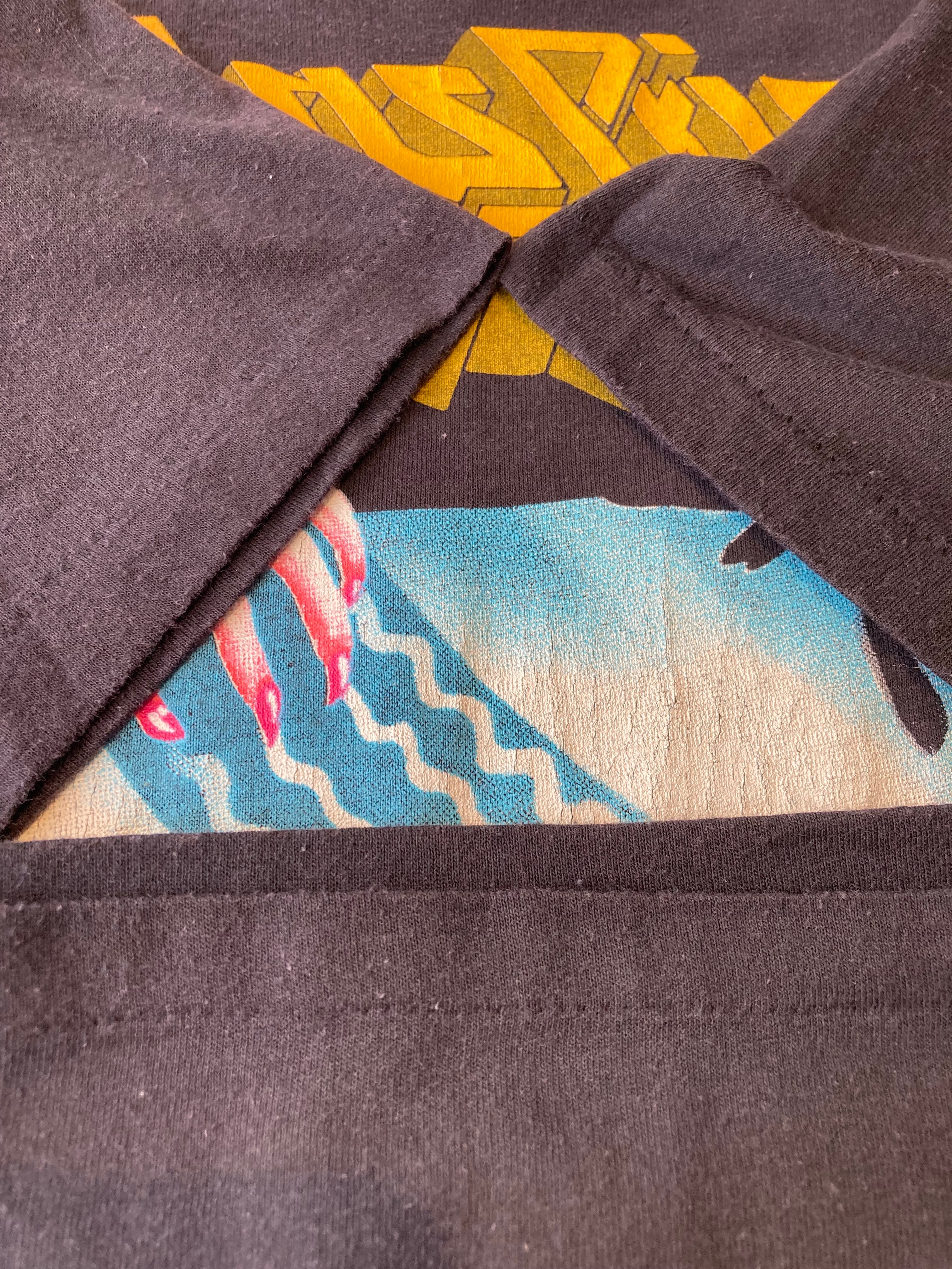 デビュー50周年を超えて今も尚、第一線を走り続けるメタル・ゴッドの異名は伊達じゃないですね!!昨年リリースしたアルバム、Invincible Shield と来日公演も記憶に新しい彼らの86年リリースの10枚目のアルバム、Turbo のツアーTシャツ。