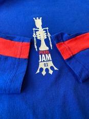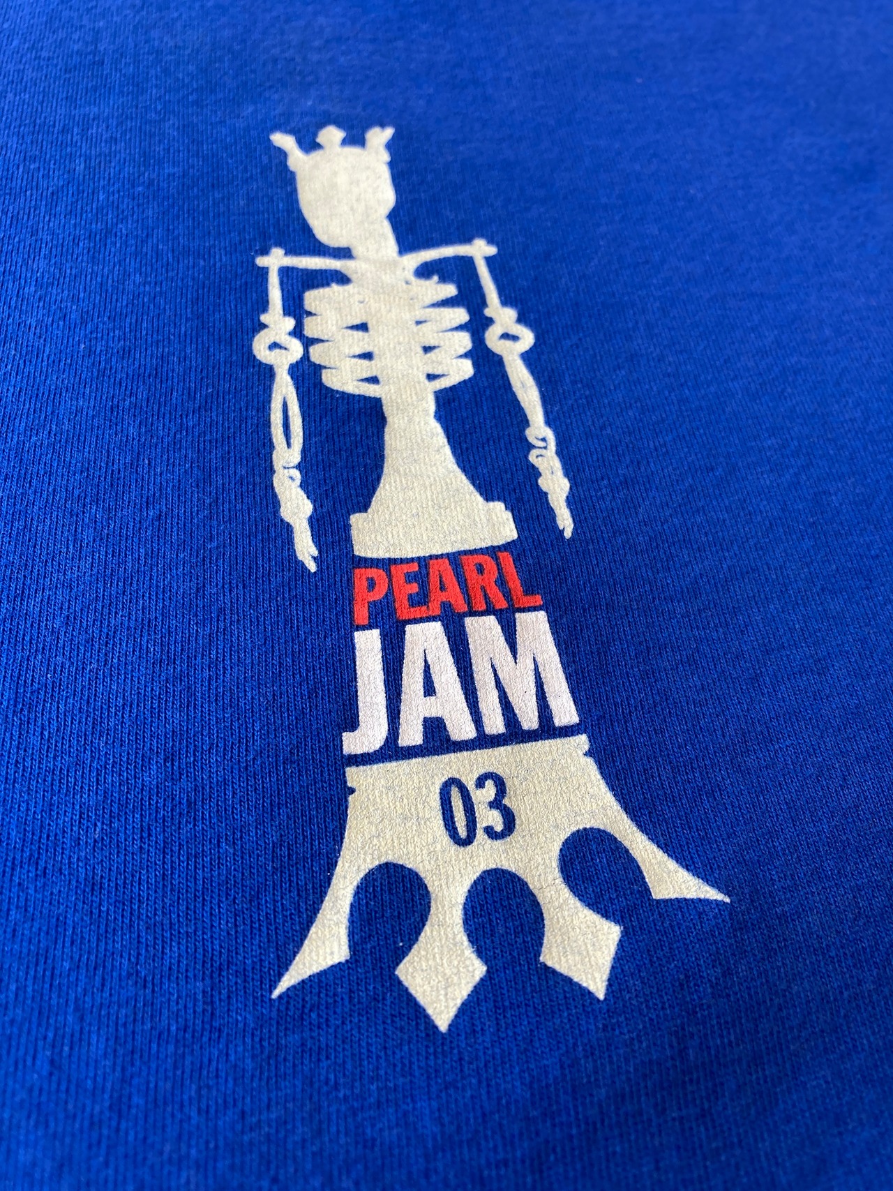 音楽は勿論、ロックTとしても不動の人気を誇るパール・ジャムの02年に7thアルバム「RIOT ACT」 期のデザイン。王冠とスカルのシンプルなデザイン◎個人的にはPEARL JAM らしからぬ配色と珍しい切り替えタイプ且つロンTって球数が少ないので超〜オススメです。