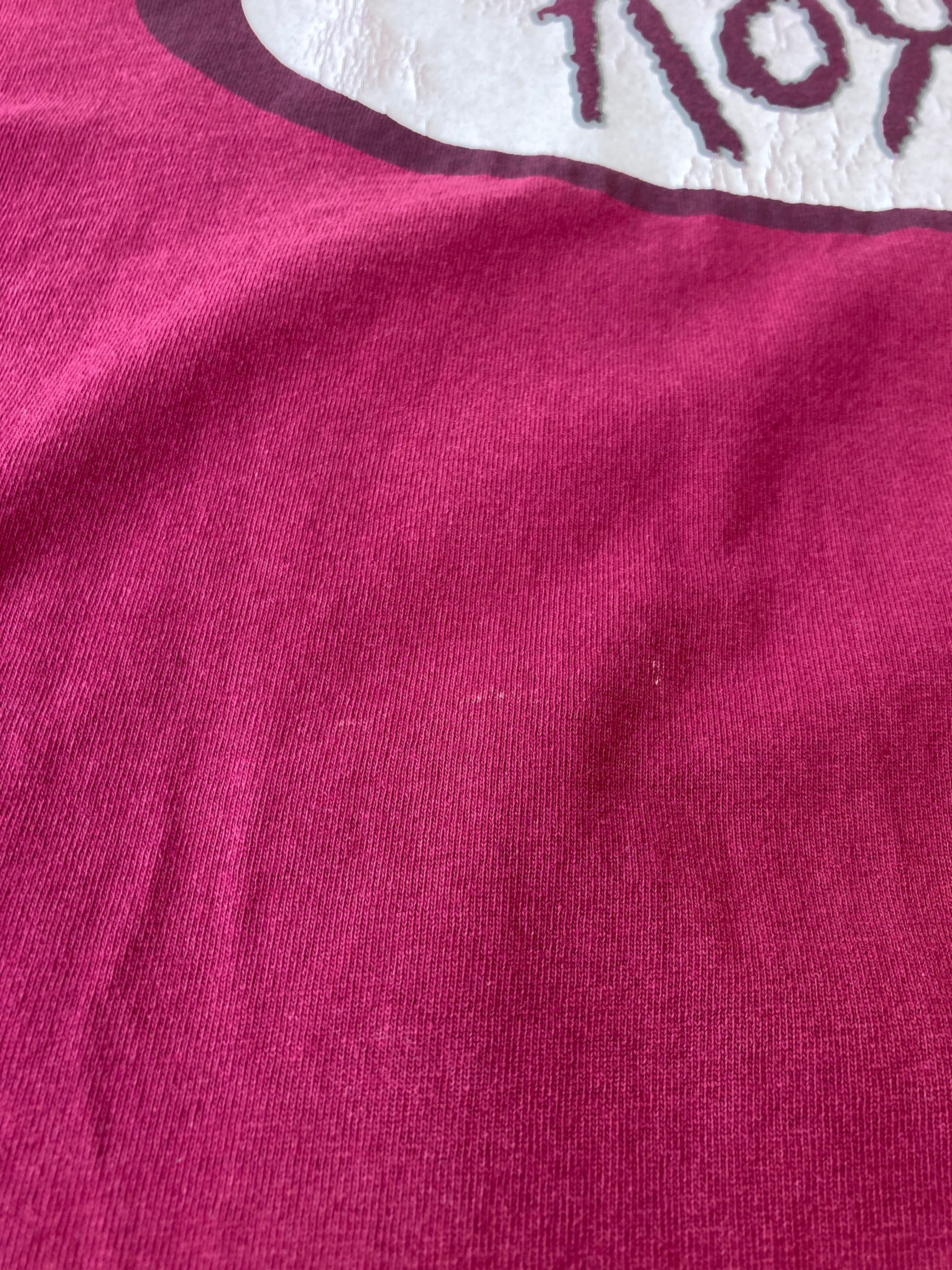 話を戻して、サーフ&スケート直球なデザインはKORN の中でも珍しく、探されている方も多いイメージの一枚◎パッと見、ロックTシャツと分からない所がツウ好みかと思います。少しフェードしたバーガンディーが良い味出してるかと。