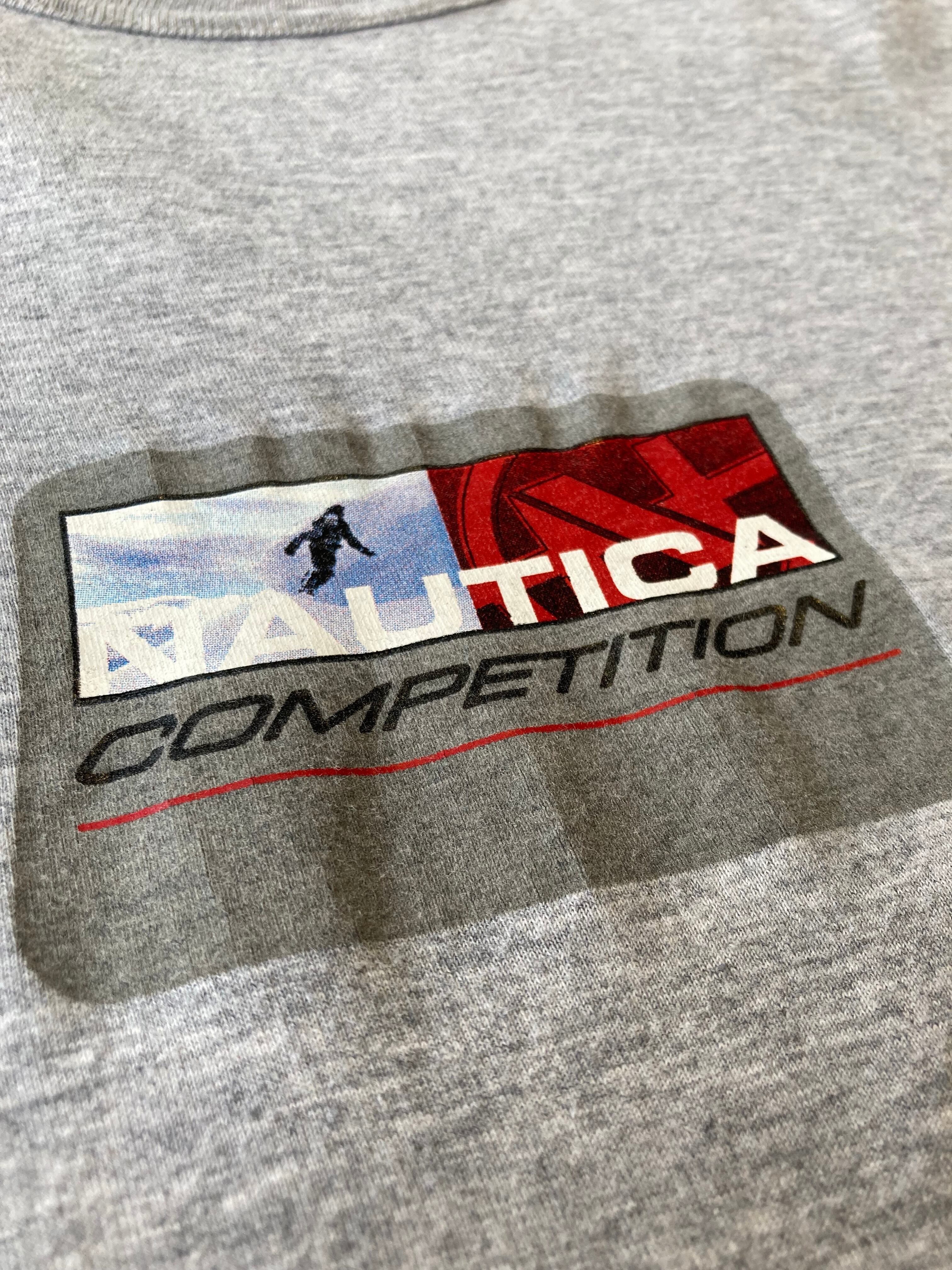 NAUTICAの中でもハイテク感のあるデザインと機能性の高さで人気を誇ったシリーズで、アクティブライン的な位置付けだったコンペティションライン。Tシャツのデザインも何処となくテック寄りな変わり種が多いのも特徴◎