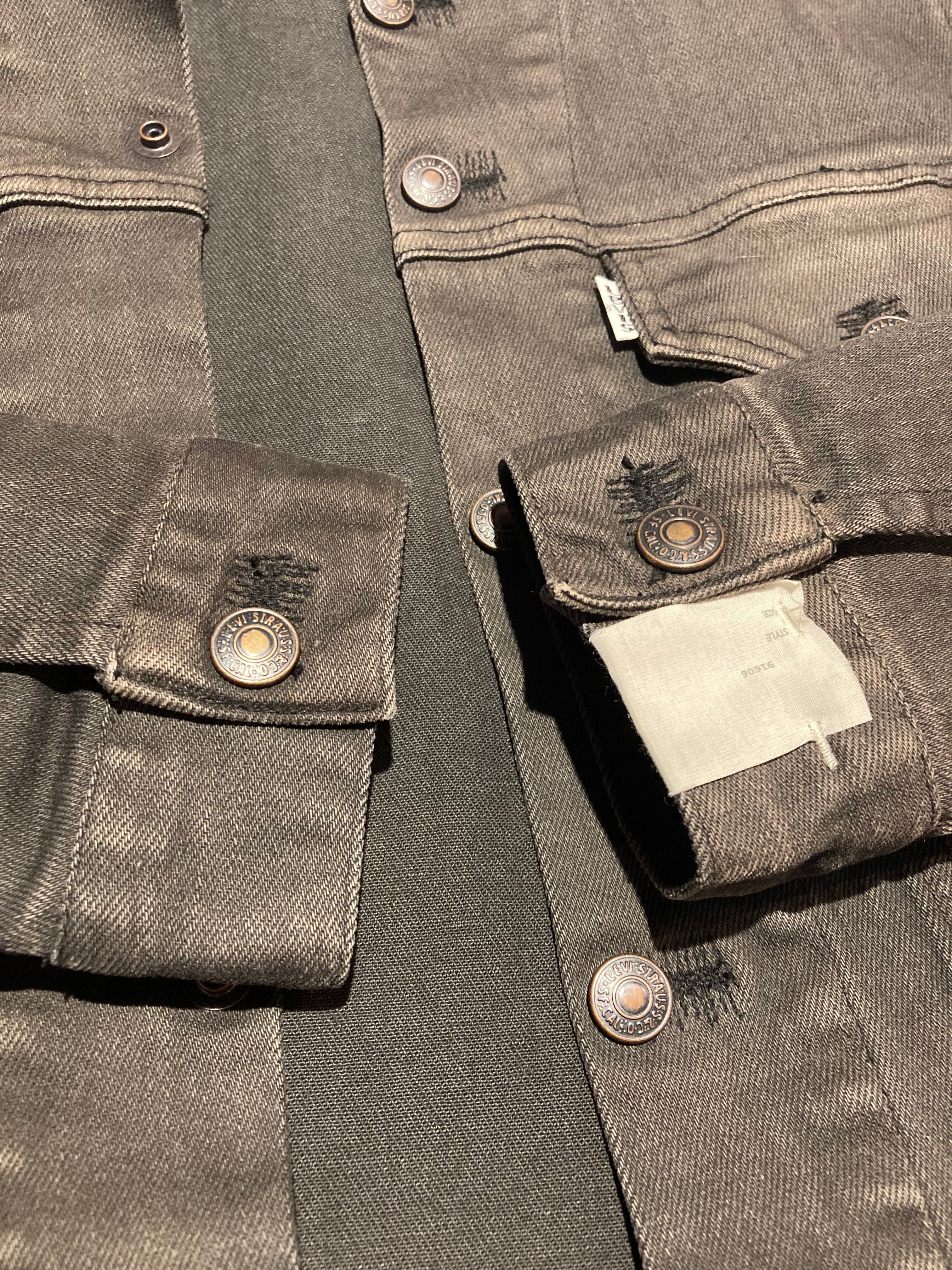 Nハリの最初期アーカイブ、ミスターハリウッド名義時代に扱っていた名作コレクションです。Levi's 70505 ストレッチブラックをベースにブランドタグが装飾されたコラボモデル。このデニムジャケット自体シルエットがチョ〜綺麗なので、文句無しの仕上がり。