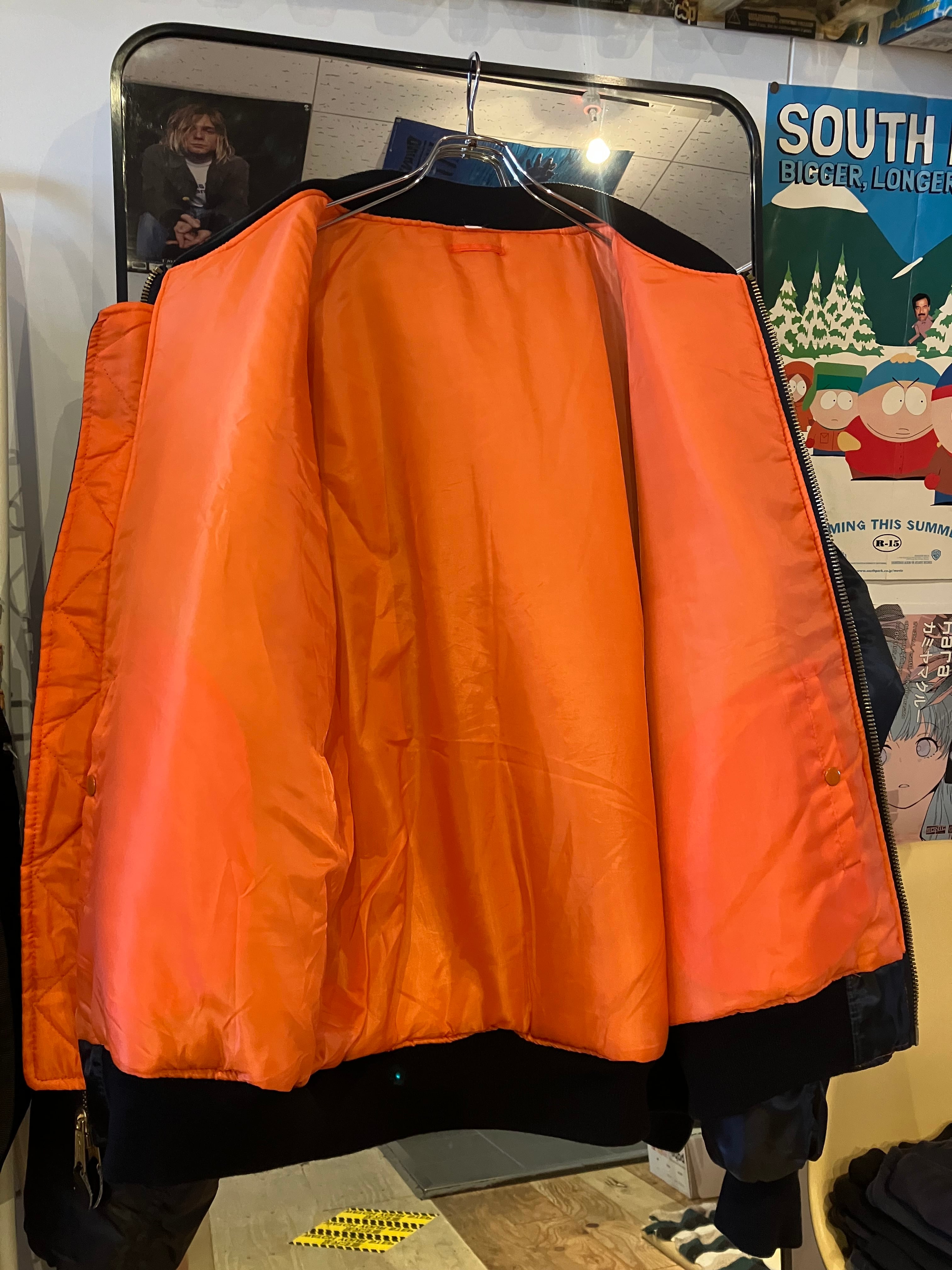レスキューオレンジの状態も良好かと。リバーシブルにしても◎近年はMA-1のビッグサイズがなかなか無い為、特にこのブラックは都内でも高騰しています。この辺りもあるうちに確保しておくのが吉かと。気兼ねなくガンガン着て洗濯出来る所が良いですね!状態も良く、男女問わずオススメの一枚です!!