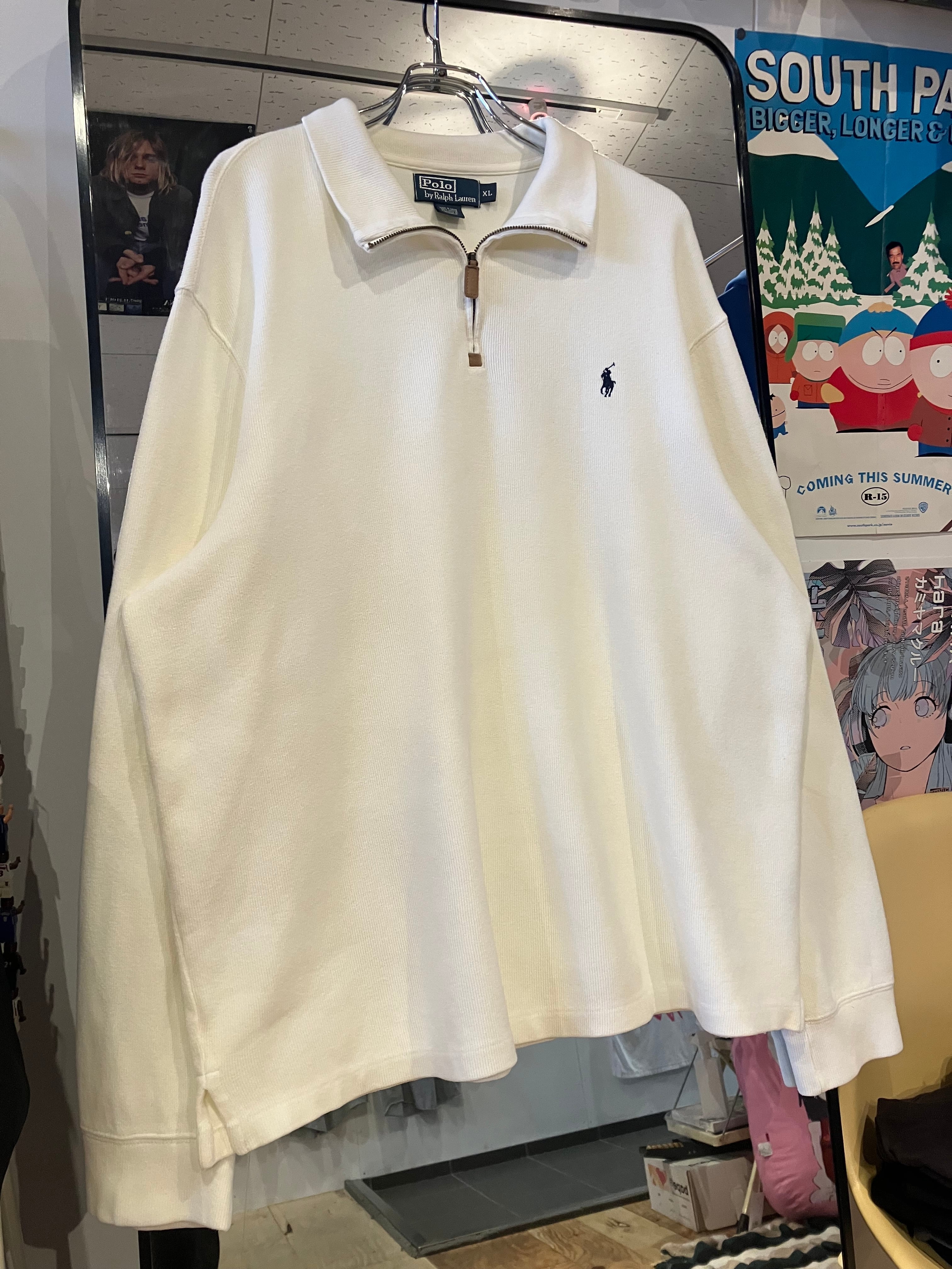 ラルフローレン製ハーフジップスウェット、新しく入荷しています。ゆったり併せたい方にはマストなXL、久々です。大人〜なホワイト、持っておいて損は無いですね◎