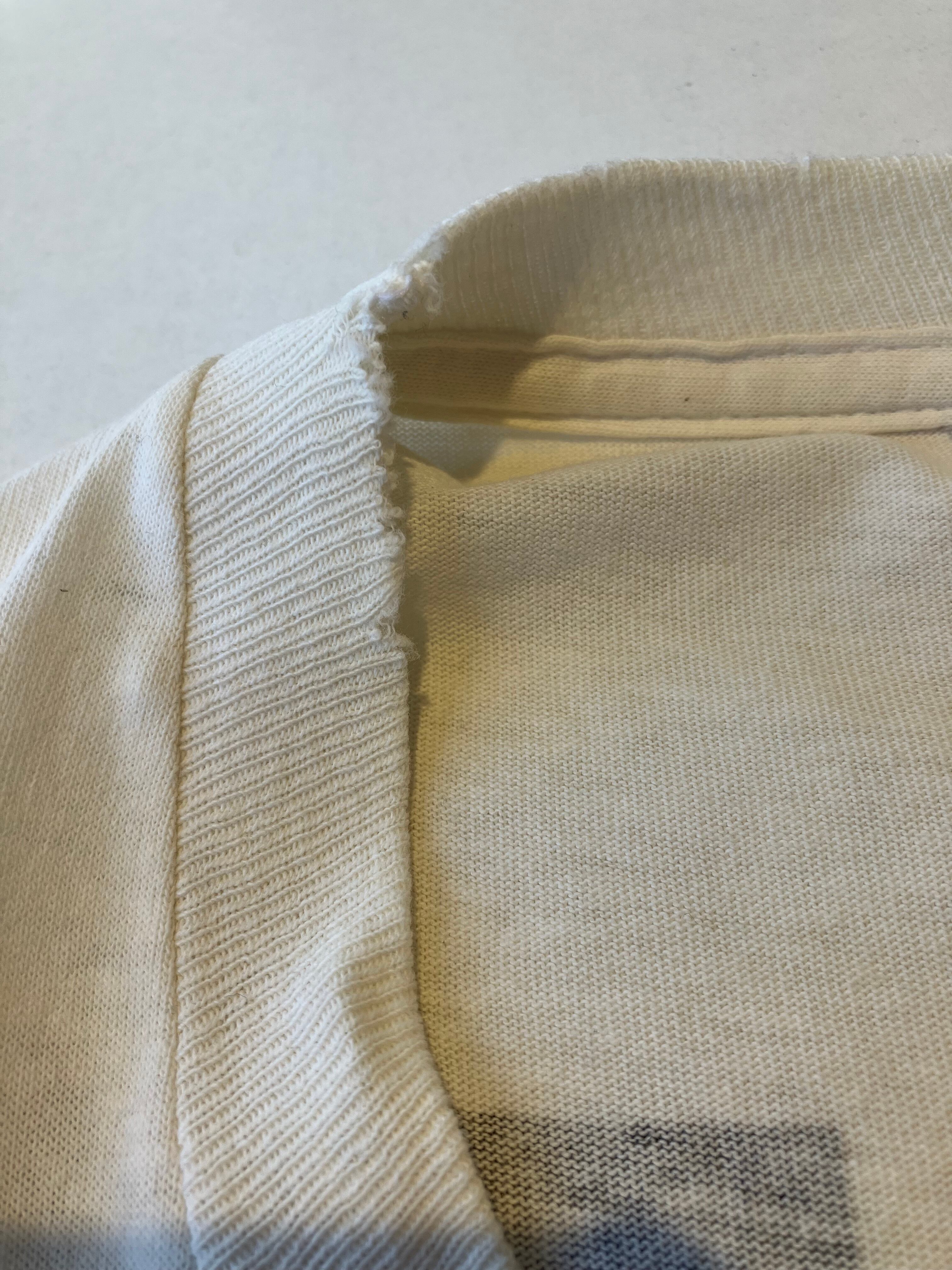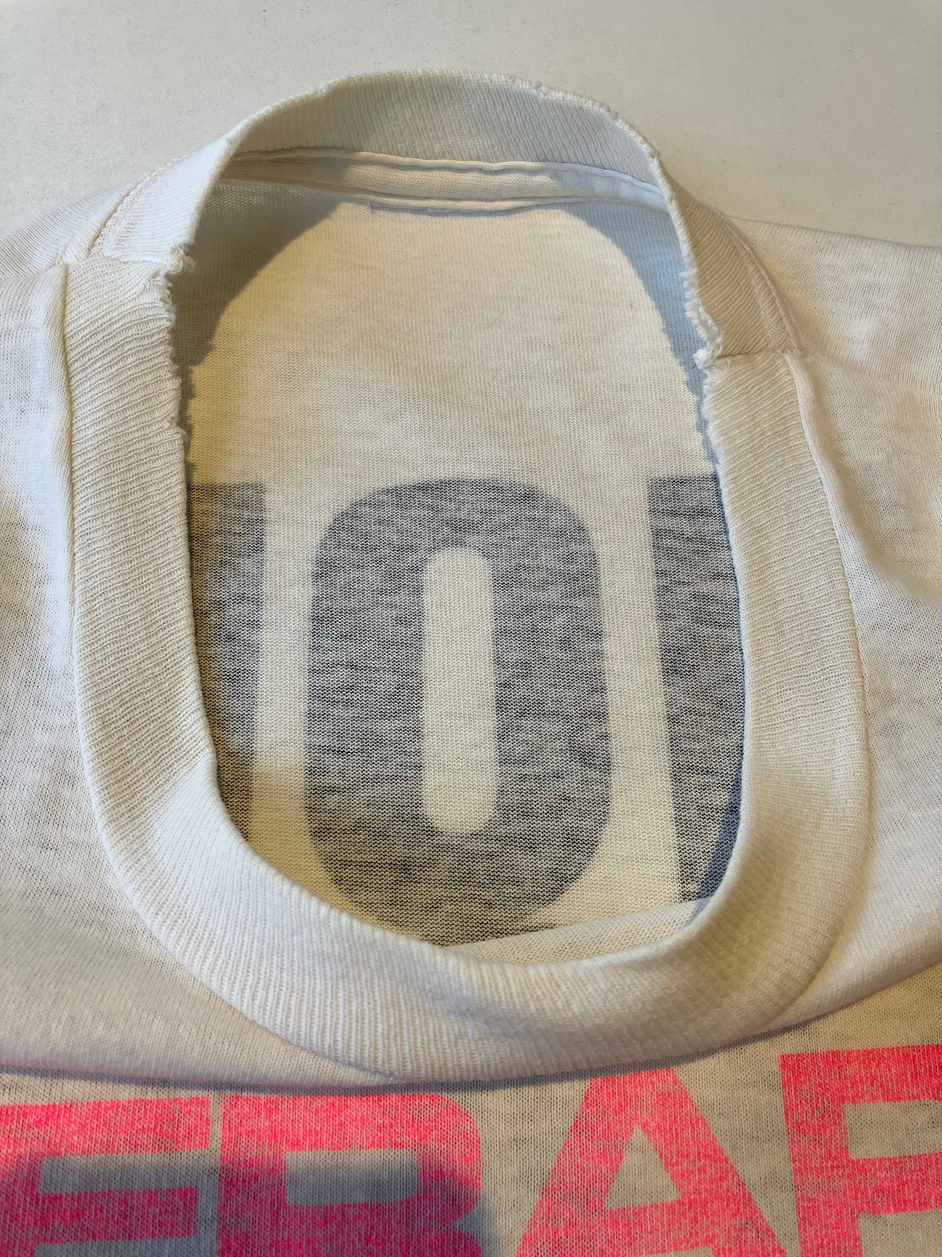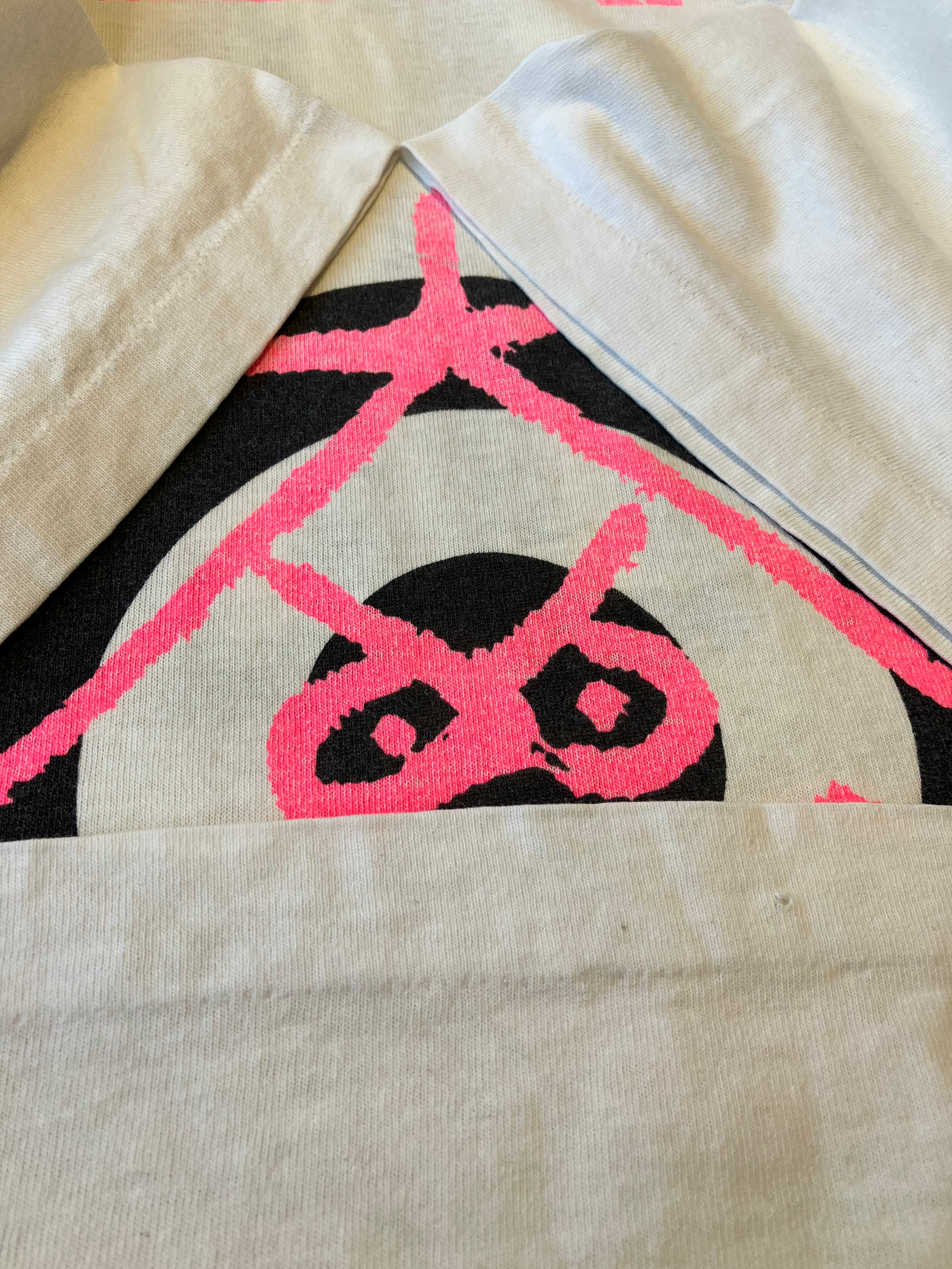 オルタナ、ノイズを語る上で外す事の出来ないバンド、Therapy ? 現役って所も凄いですよね。93年リリースのep、Short sharp shock 期のデザイン。フロントにはお馴染みのキャラクター、バックにはインパクト大なタイトルプリント◎Therapy ? は秀逸なデザインのTシャツが多い事で有名ですが、コチラもそんな一枚かと。
