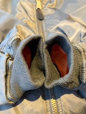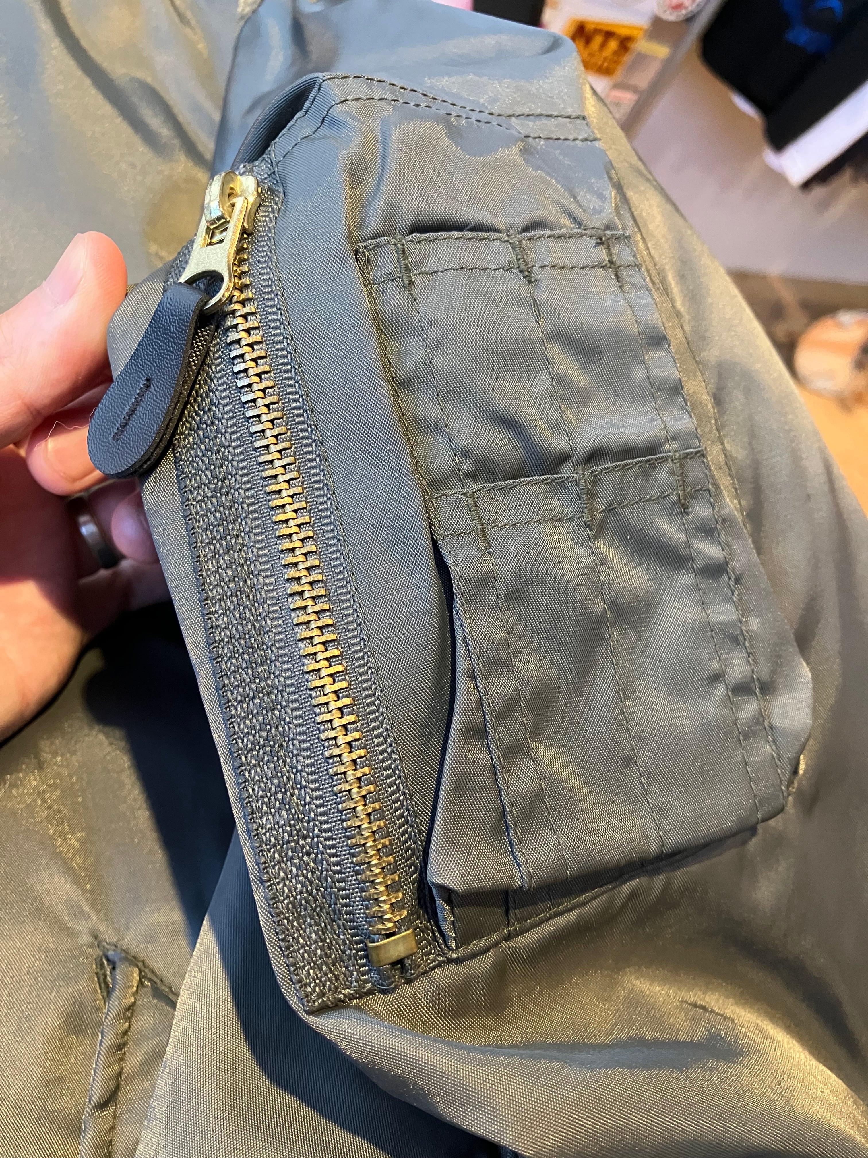 本格仕様のMA-1を多数生産していたALPHAやAVIREX 等の初期ブランドの1つでもある「PHANTOM MILITARY」社製のMA-1です。写真では伝わりにくいのですが、ブラックではなく少し燻んだヘザーグレーの様な色合いが◎ゴリゴリなミリタリー感が苦手な方は着やすいカラーでオススメ。