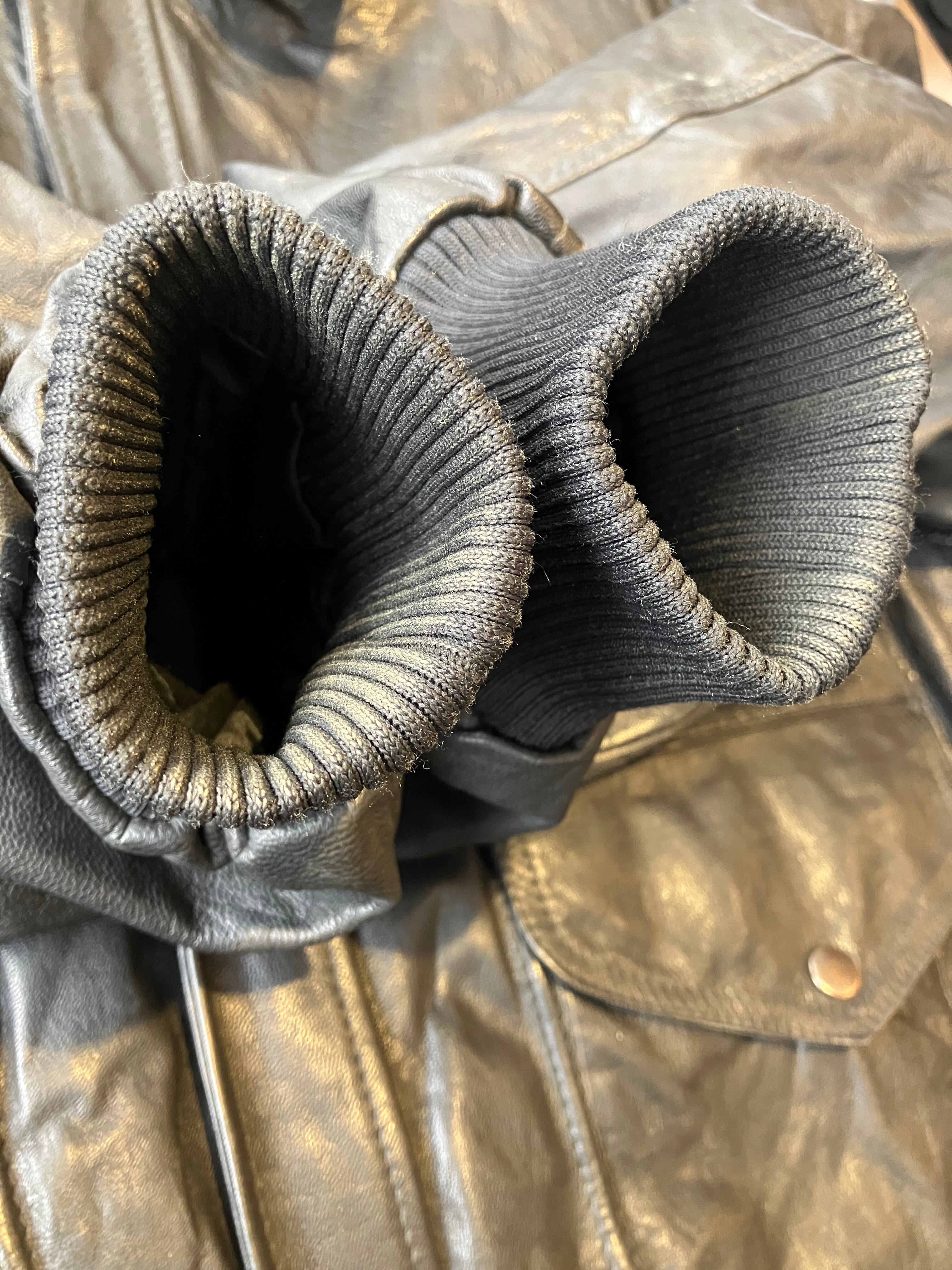 A-2 フライトジャケットタイプのレザージャケットです。ブランドタグが無いですが、ヨーロッパ系のしっかりとした造りの一着◎