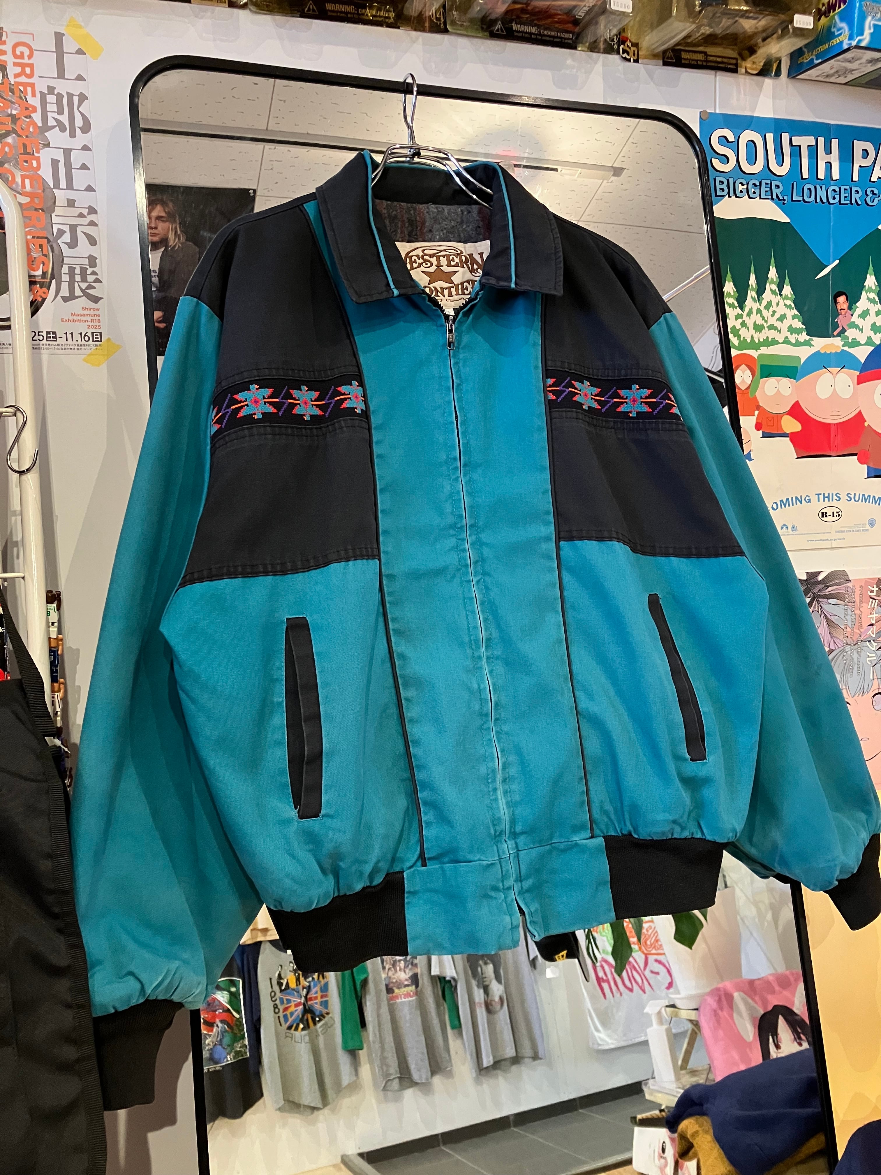 charharttのサンタフェジャケットを彷彿とさせる、WESTERN FRONTIER 製ダックジャケットです。ターコイズ×ブラックの2トーン、短丈且つ身幅広めのボックスシルエット。