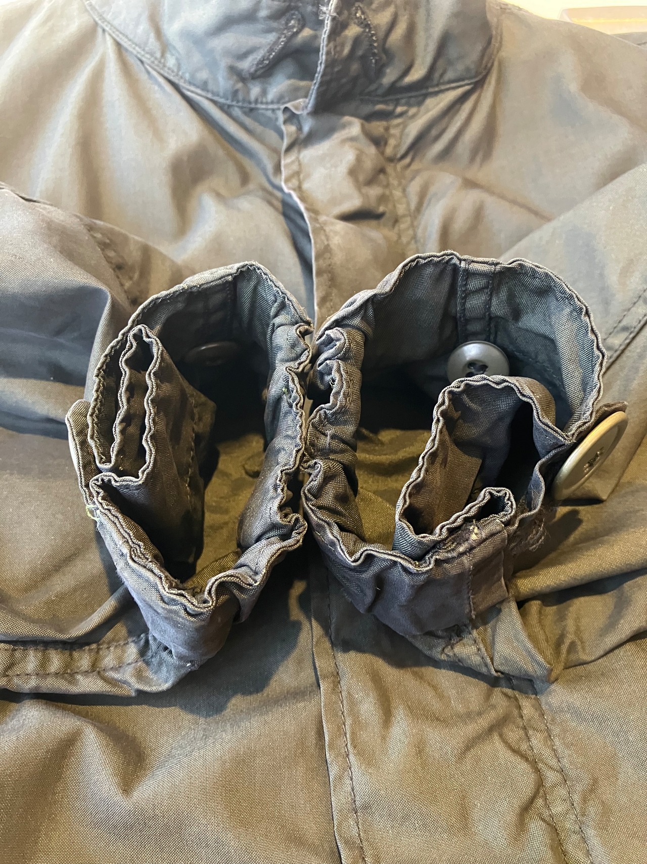 世界的になかなか見つからなくなりました。1965年に採用されたフード部分とライナーが脱着式のフィールドパーカー。今回は後染めタイプのシェルが同じタイミングで入荷しました。