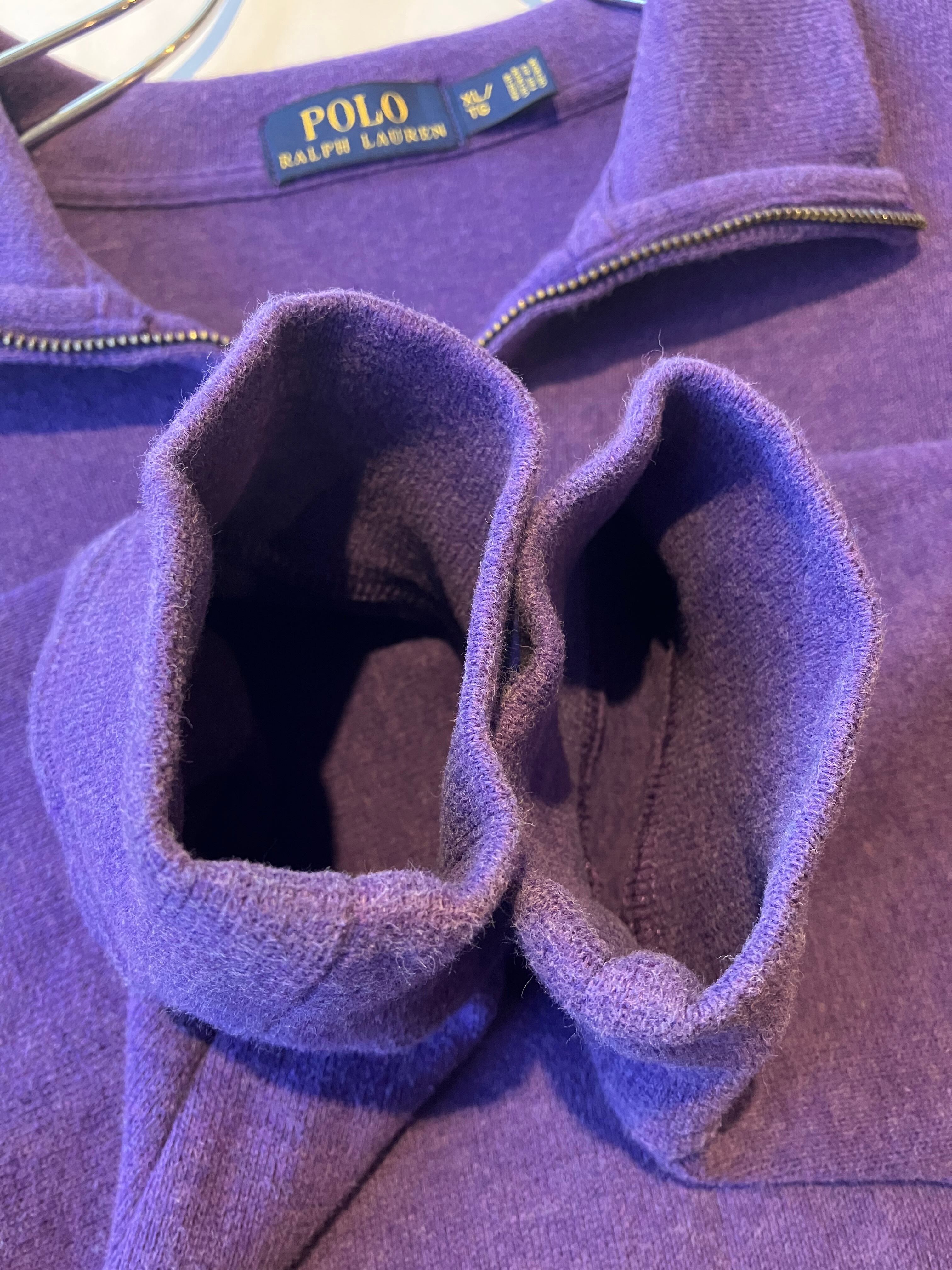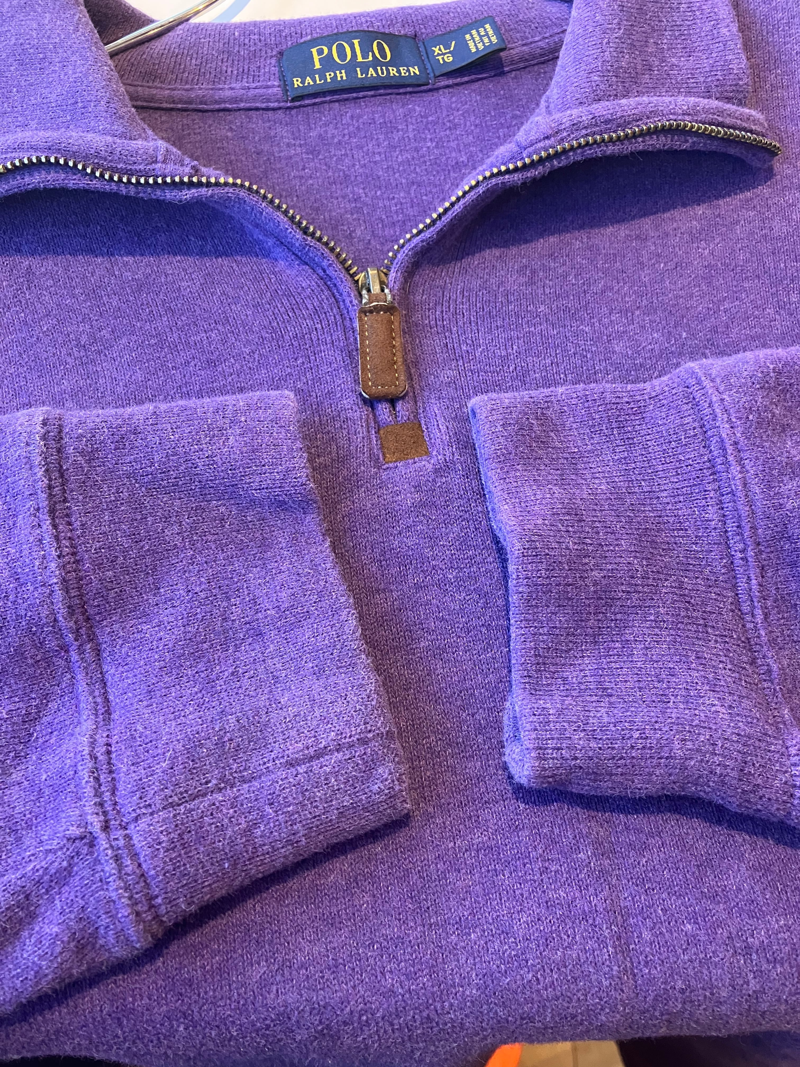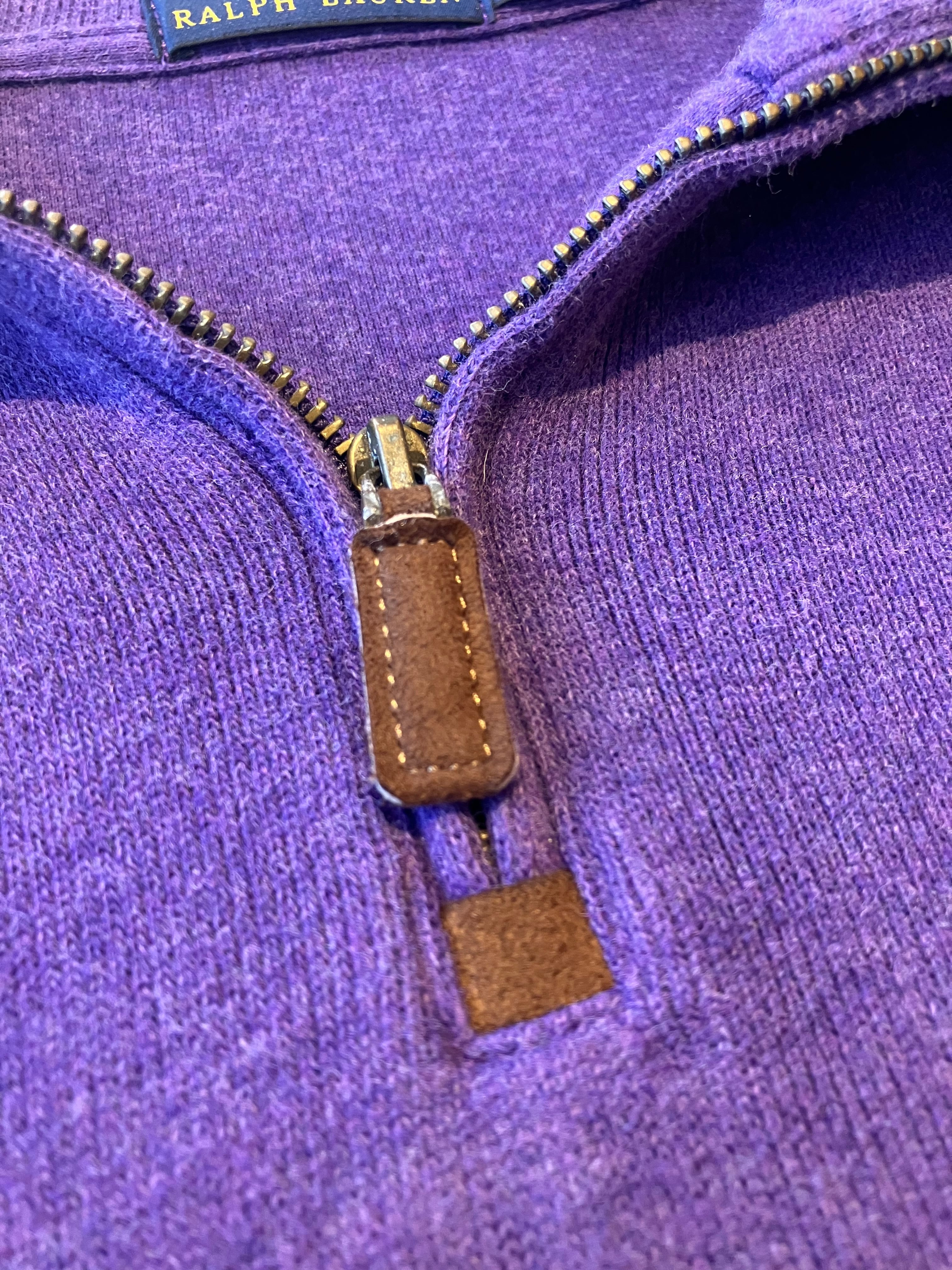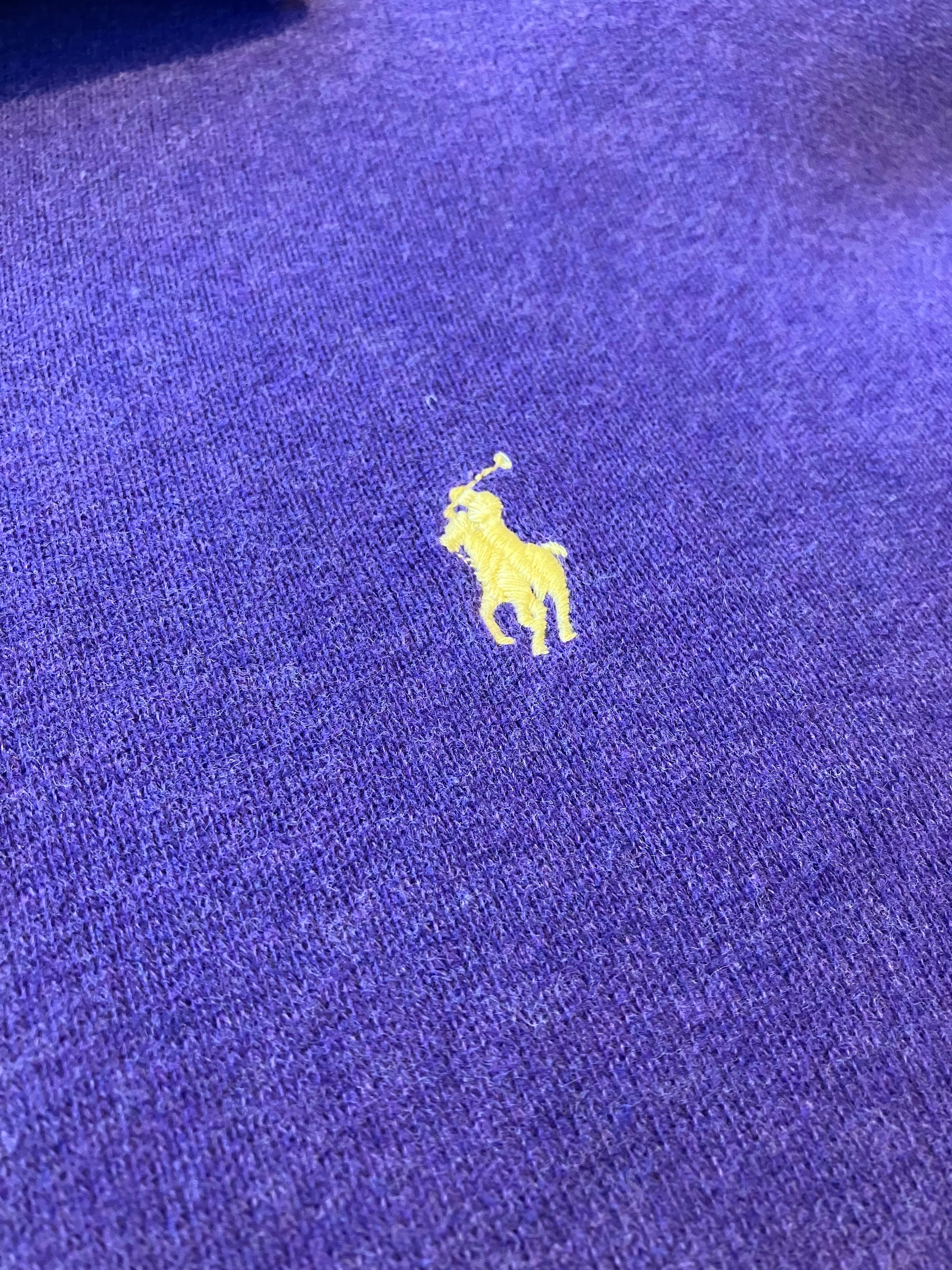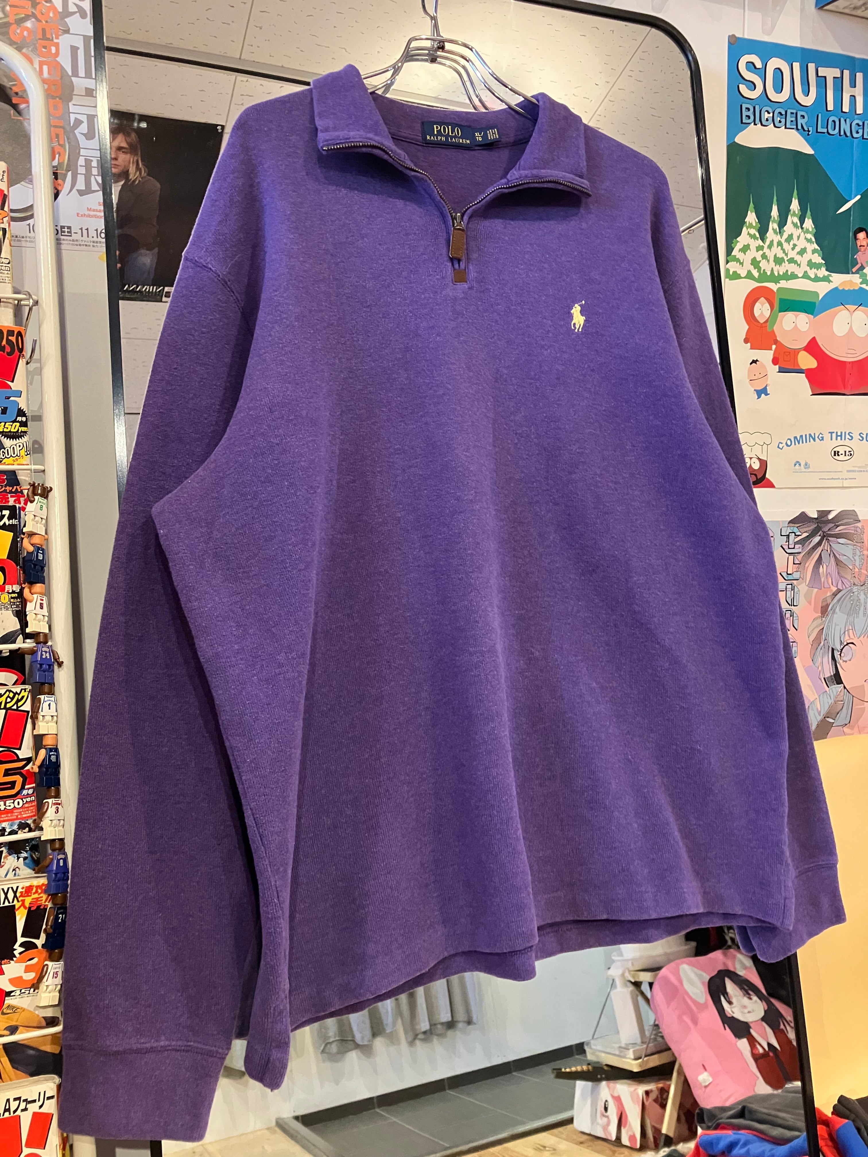 ラルフローレン製ハーフジップスウェット、新しく入荷しています。鉄板カラーネイビーの次は変わり種パープルがオススメ。ポニーがイエローなので、実質レイカーズカラー◎ありそうでレアな組み合わせ。
