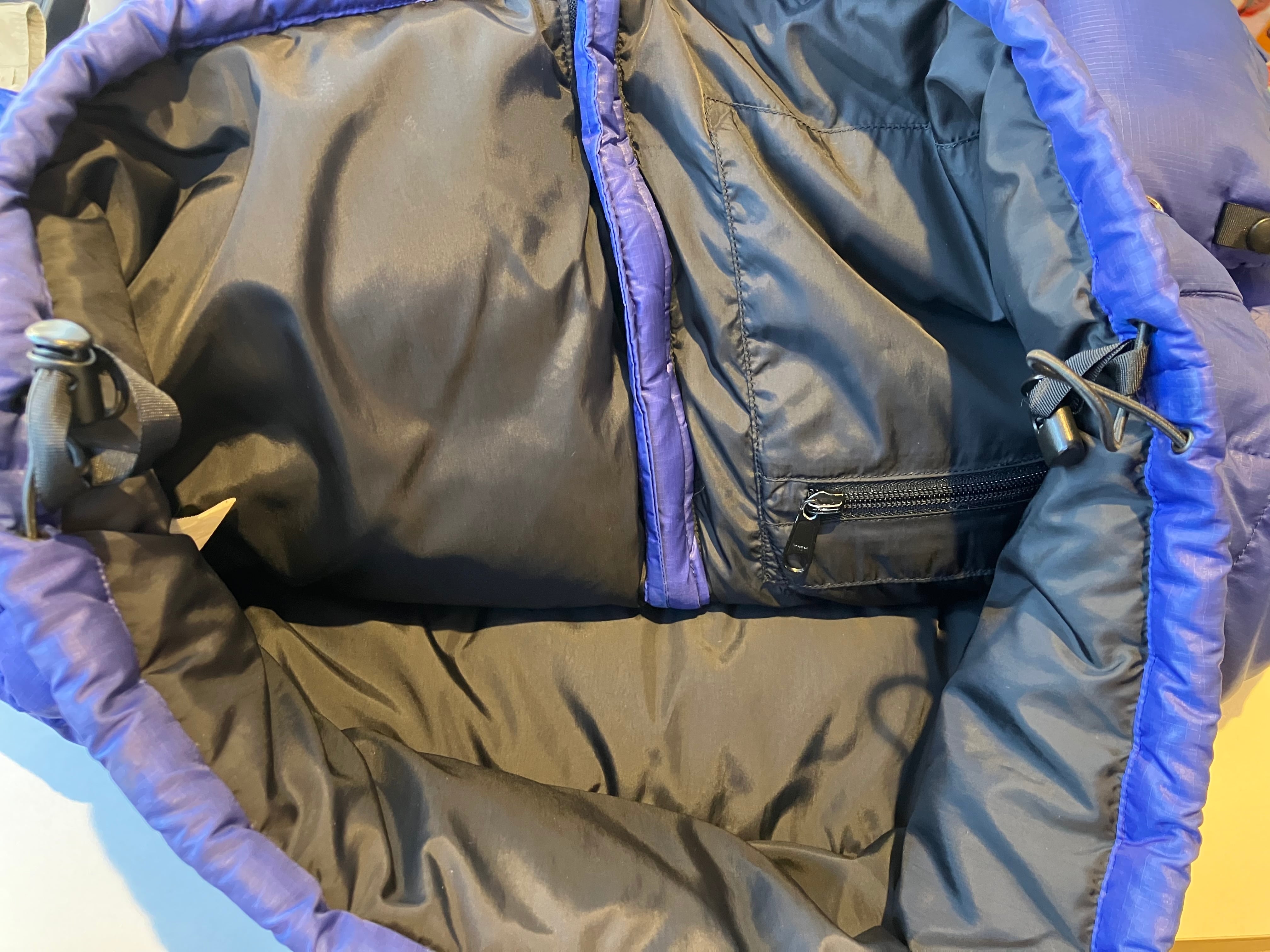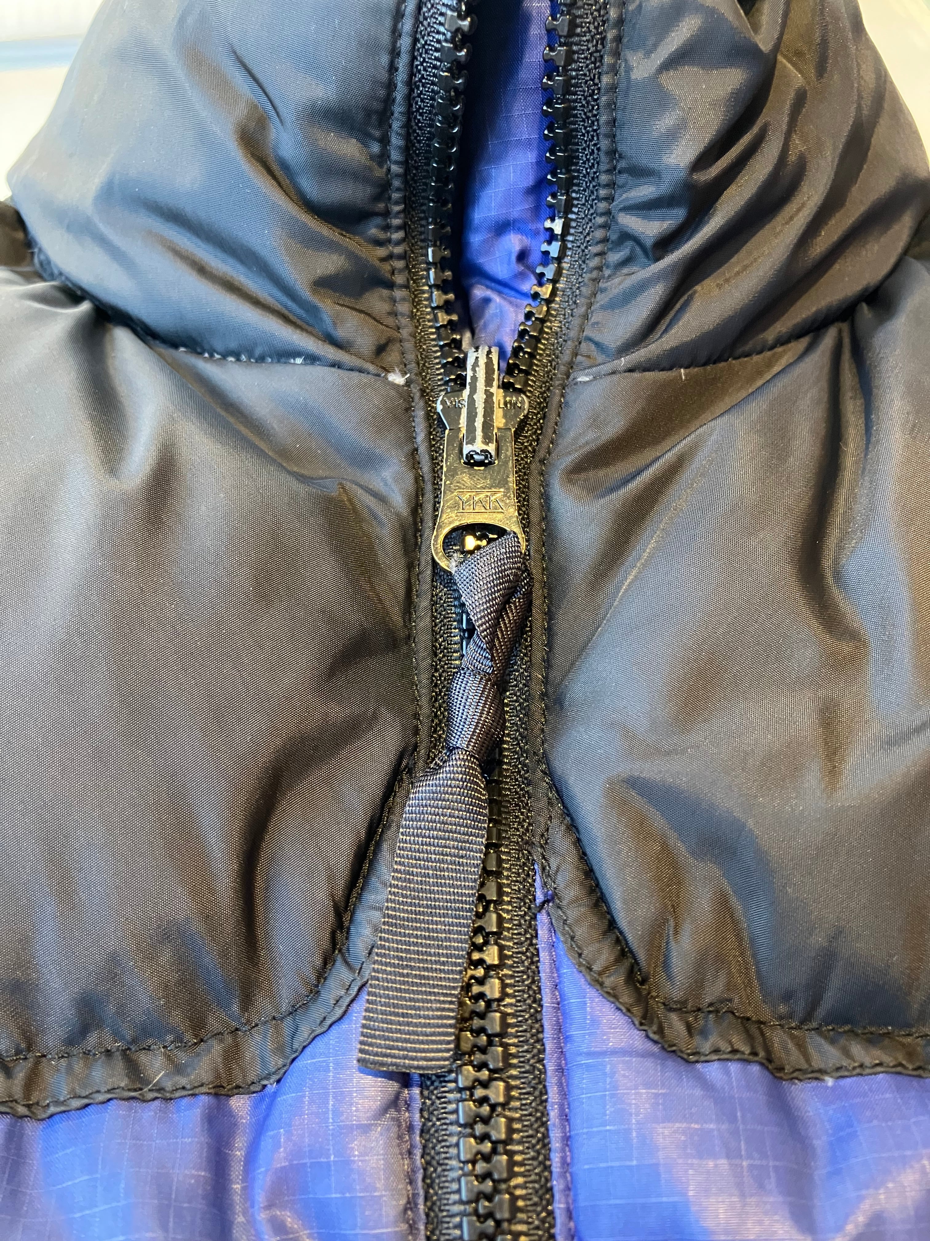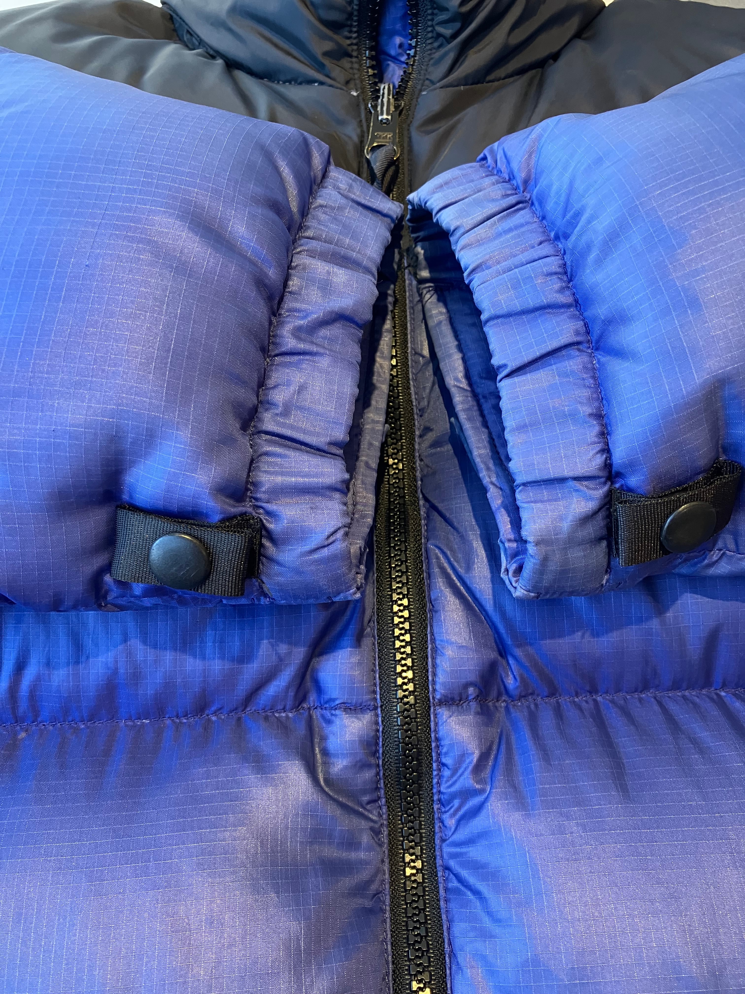フード収納、使わないとは思いますが右ポケットに収納できるパッカブルタイプ。YKK ジップに両ポケットの引き手、ドローコードの伸び無し、ホツレも見受けられません。old ヌプシを数多く見た事のある方なら、これだけ状態が良いモノはなかなか無いと思って頂けるかと。