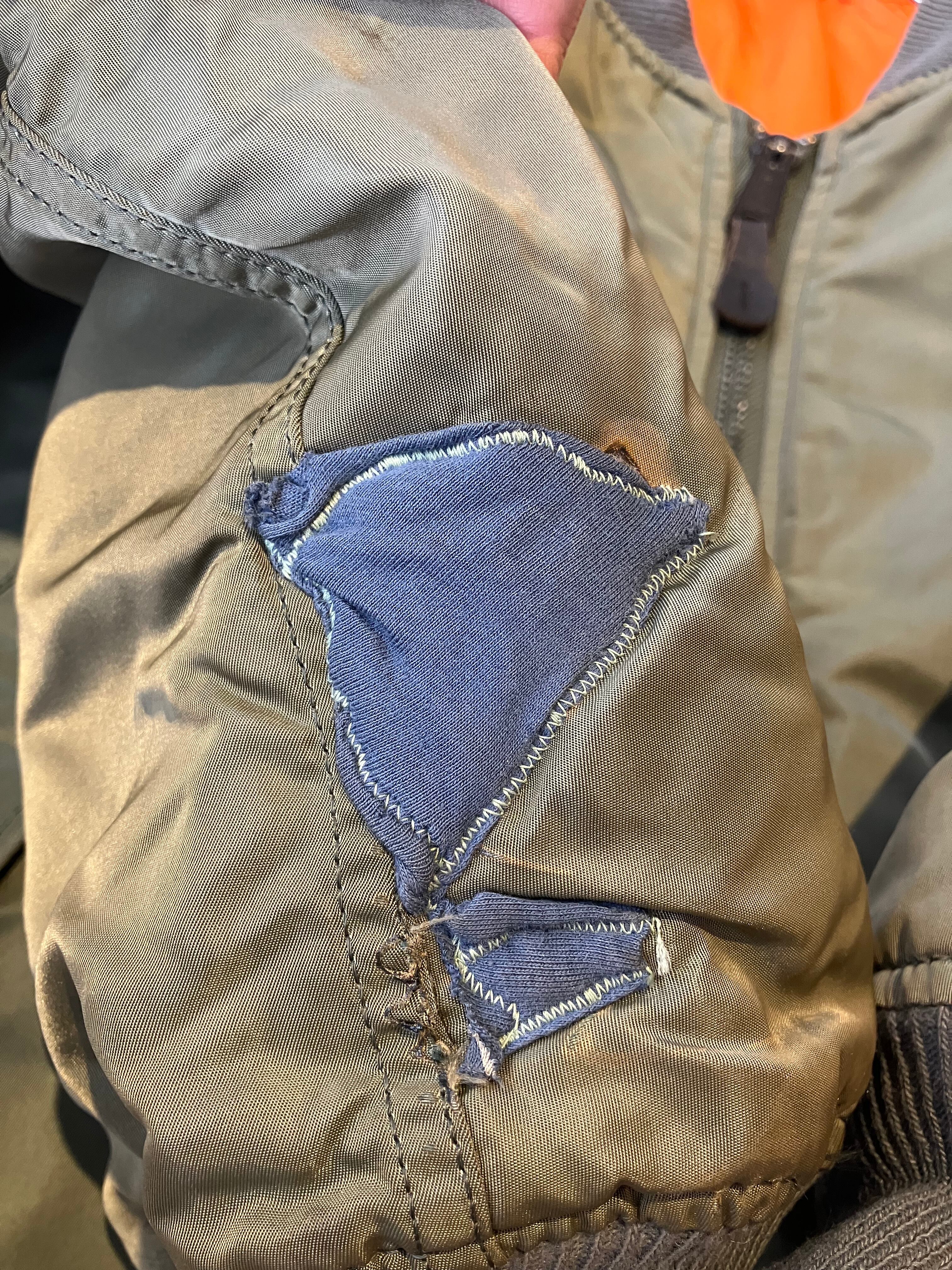 《condition》右袖に写真の様なリペアがあります。着用には問題無いレベルかと思います。使用感・画像のような汚れ、擦れはございますが、古着慣れされた方であれば問題なく着用可能なユーズドコンディションです。