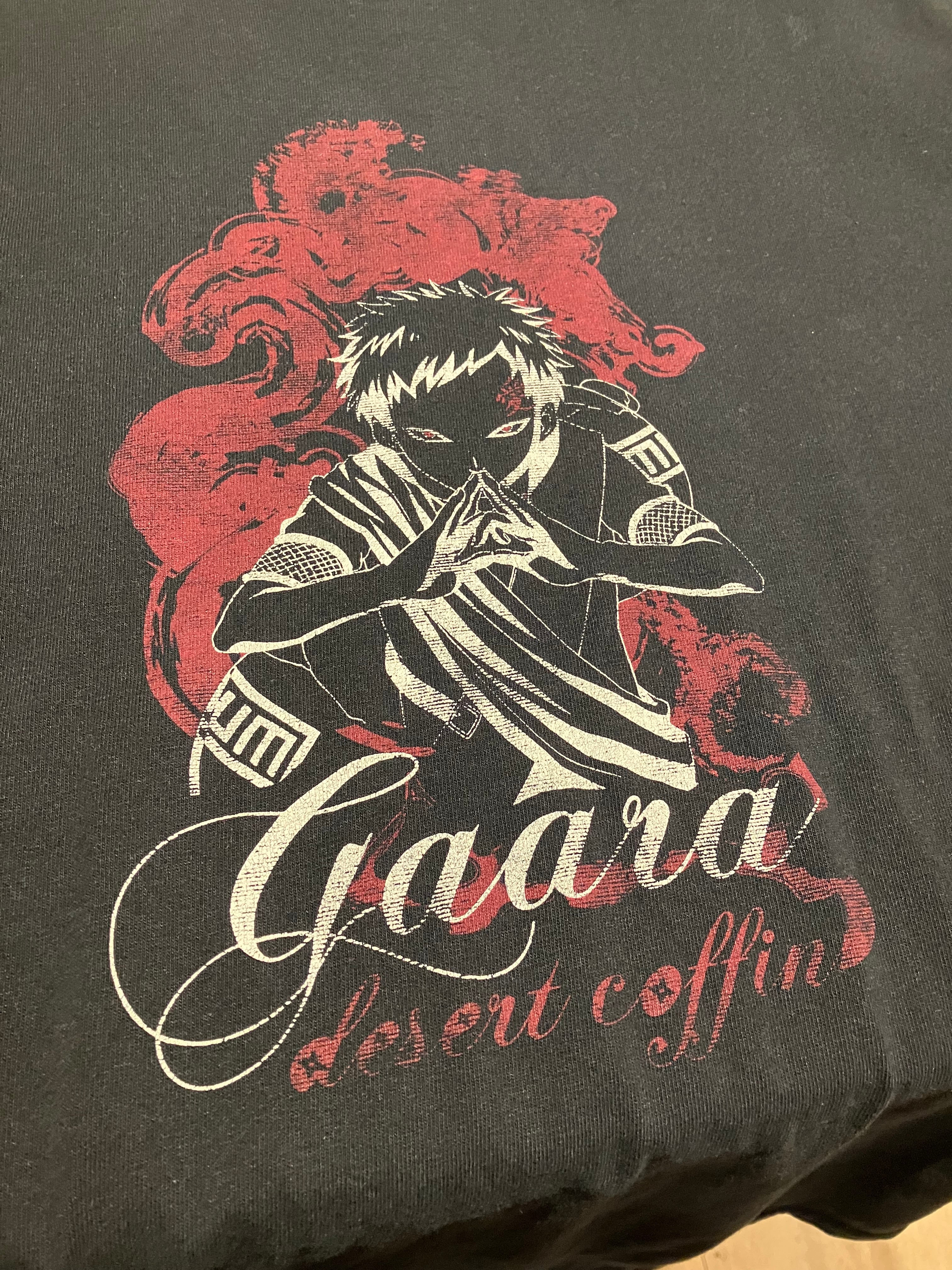 NARUTO オフィシャルの逆輸入 ver.です。海外版権の我愛羅だと愛の次に人気のヤツですね。日本だとこうはならないカッコいいデザインが好きなアニメTシャツ。anvil ボディー使用でサイズ感もバッチリです。