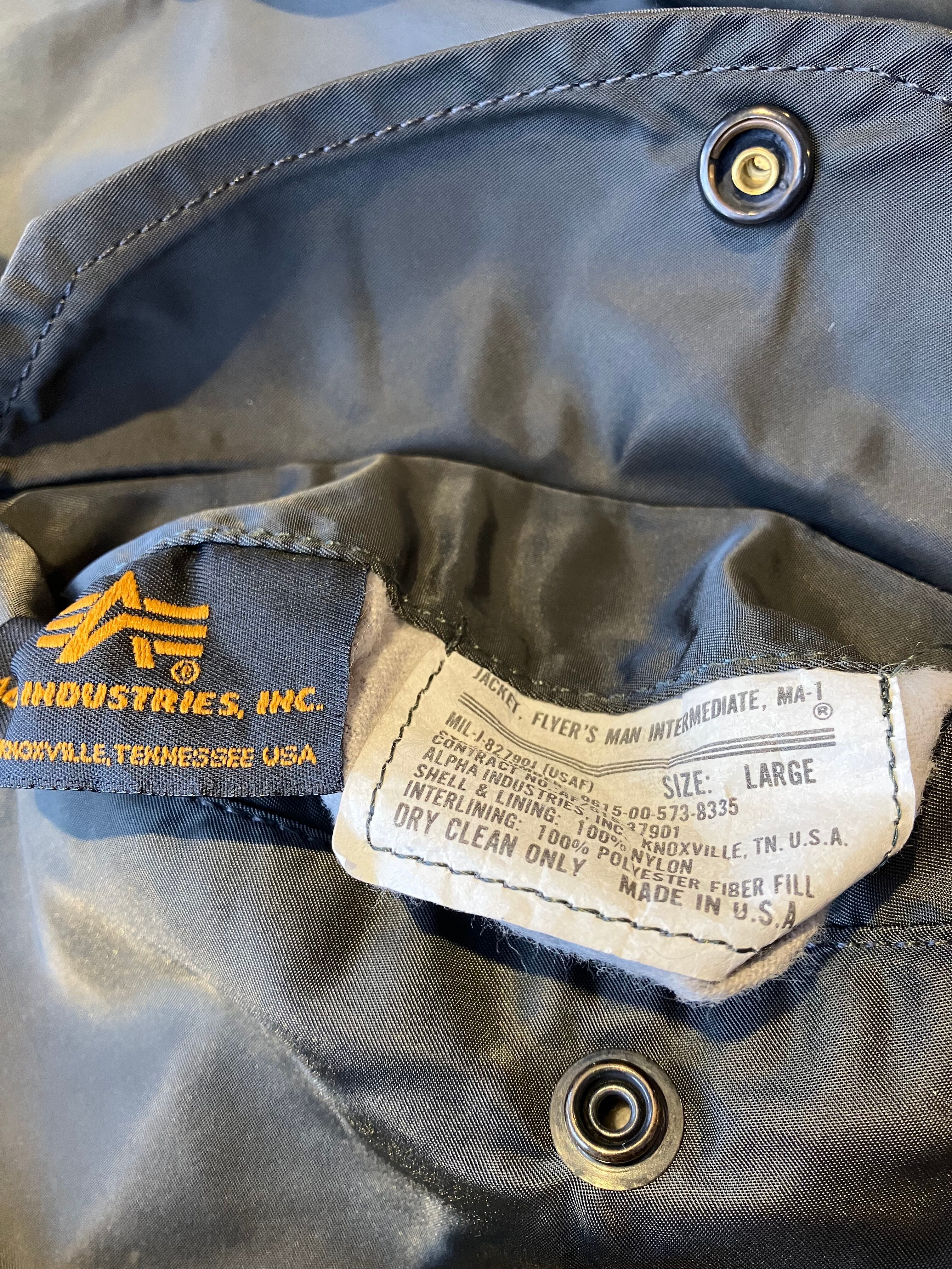 90's ALPHA社製のMA-1です!!不動の地位を築いたフライトジャケットMA-1。一枚は押さえておいて損は無いですね。
