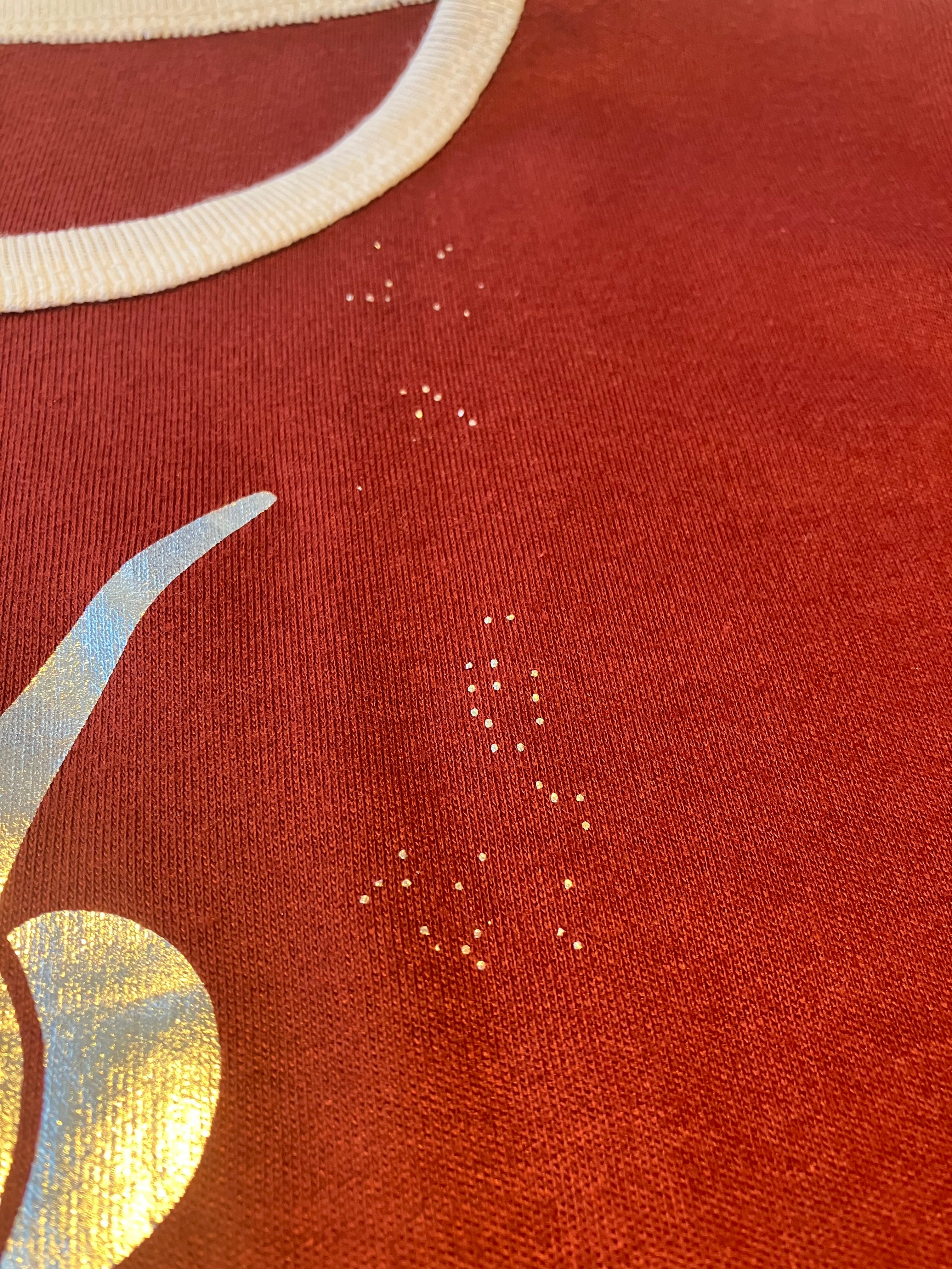 お馴染みのアンドロイドキャラのラメプリント。ピタT デビューにマストなデザイン且つ一枚かと。