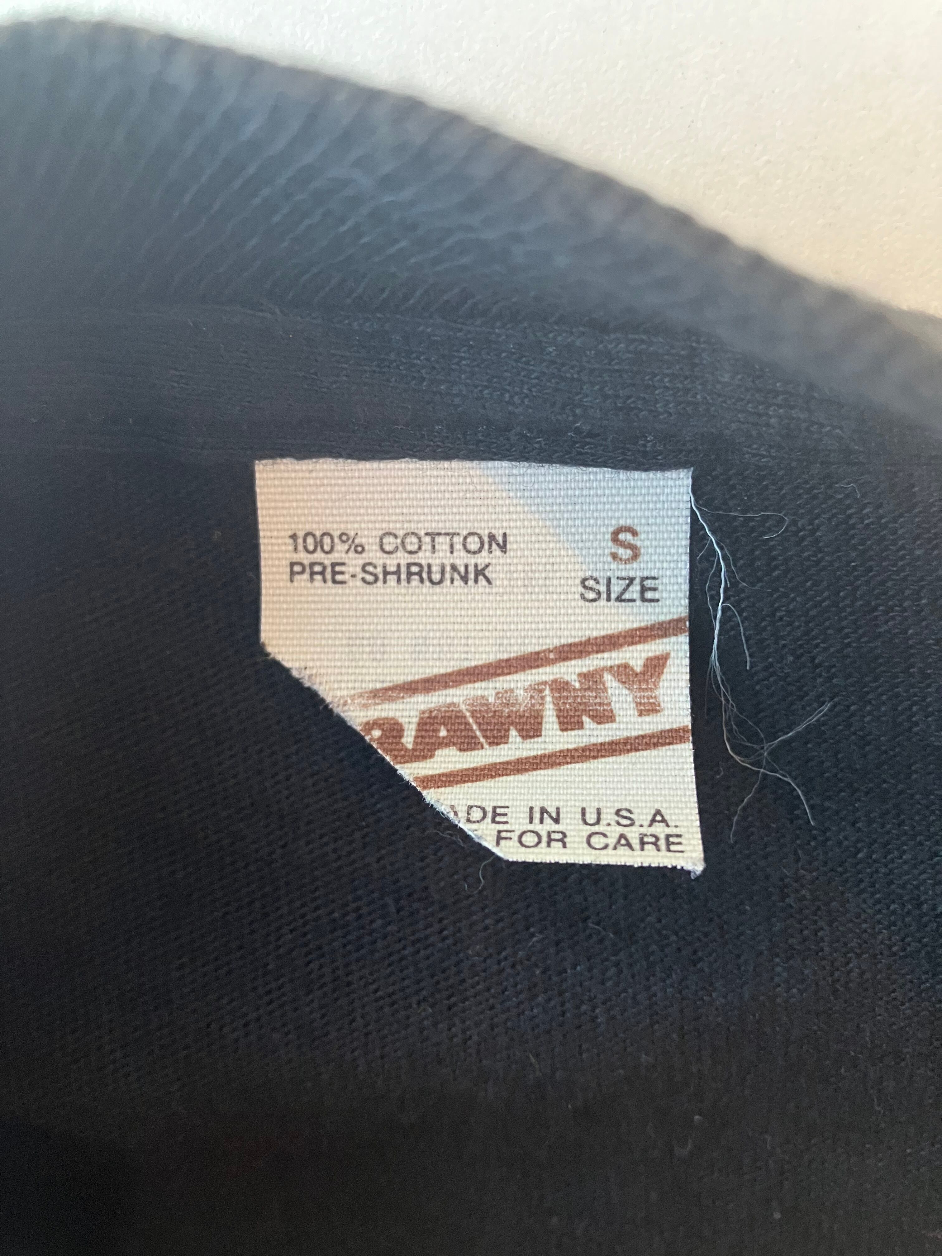 昨今のロックT ブームの更に前。サイジングも違えばプリントも荒々しさの残る年代特有のヘタウマデザイン。これぞ古着屋の王道ヴィンテージロックTシャツ、な一枚。僕が育ったのもこの辺りからです◎