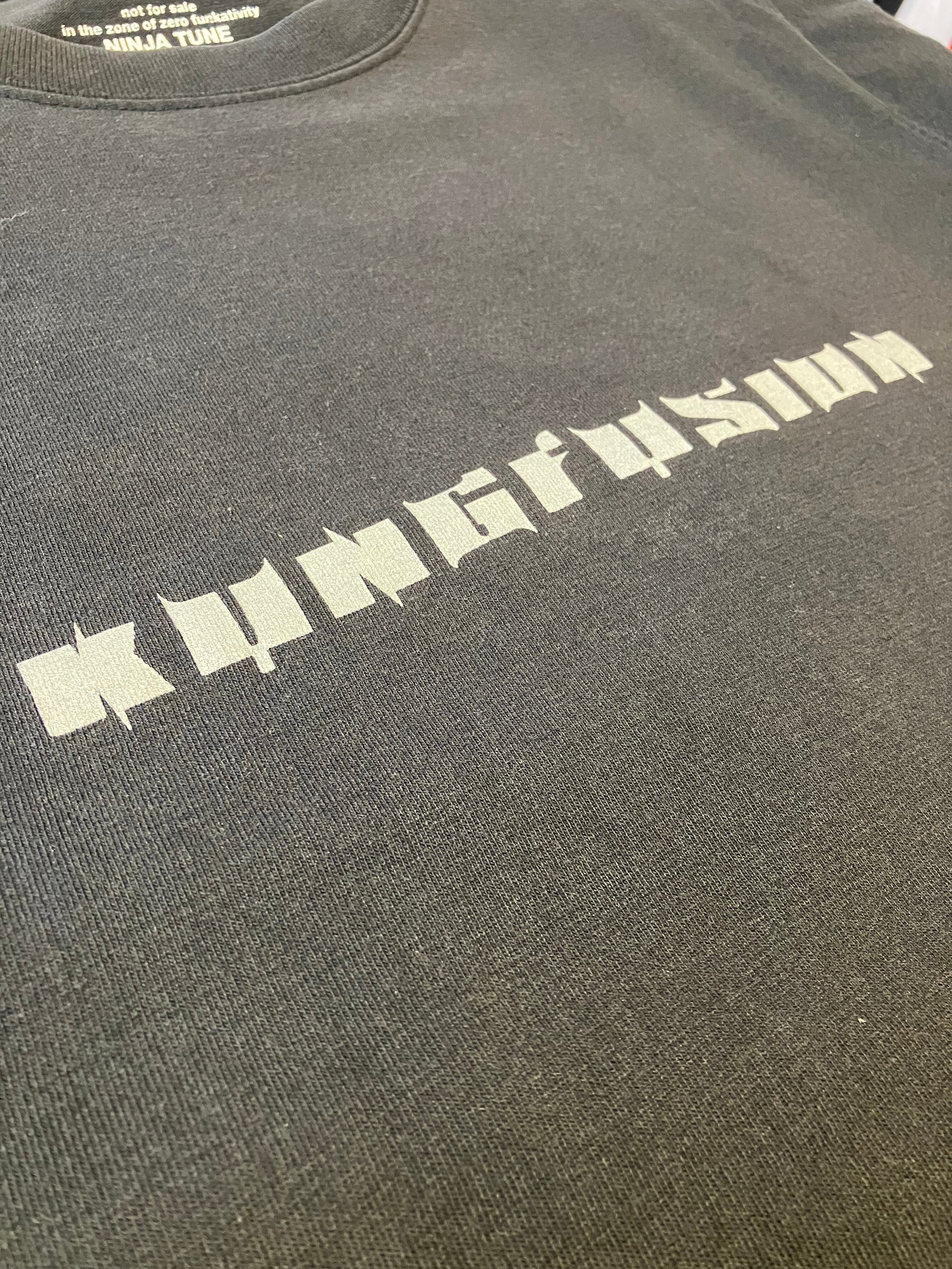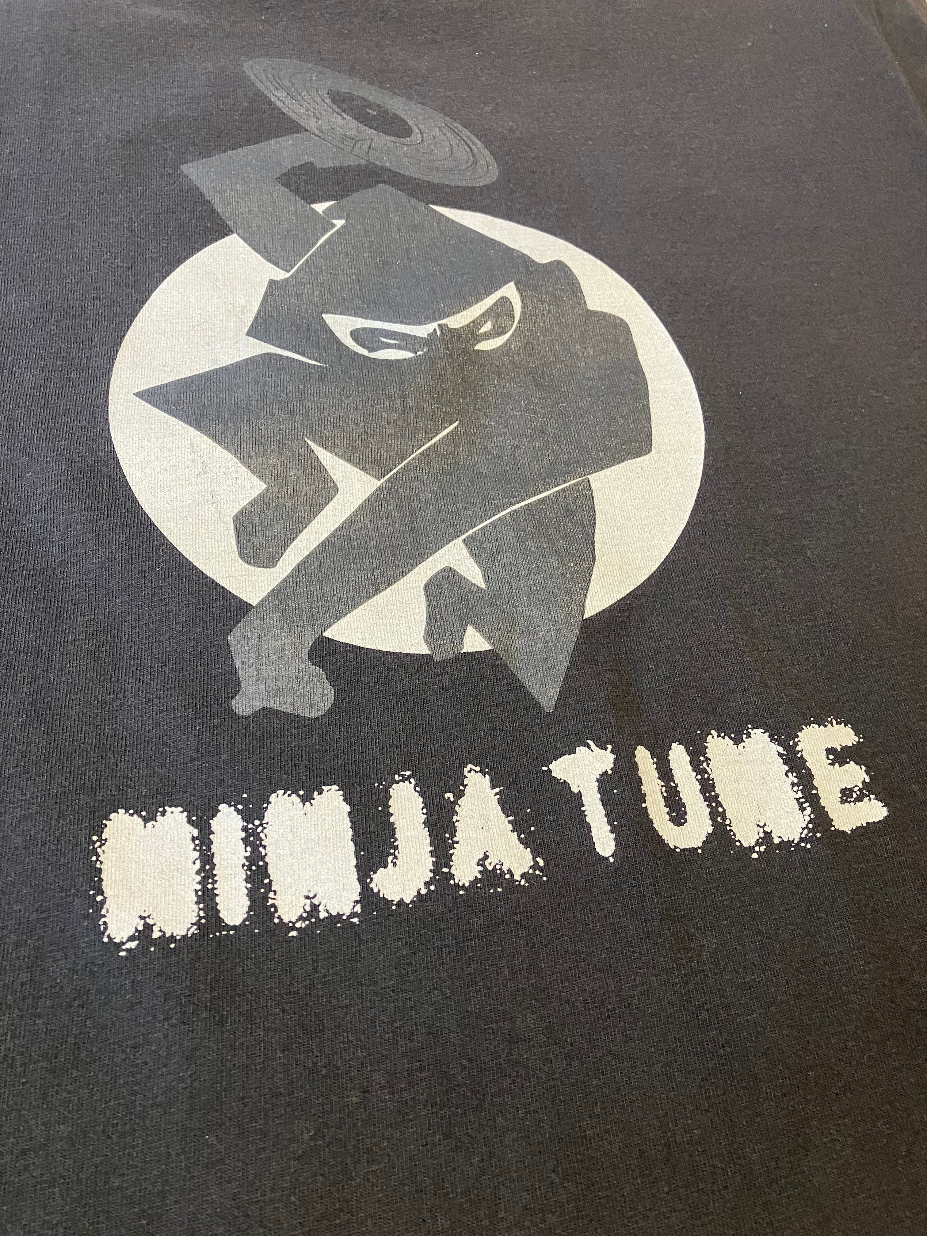 Ninja Tune も様々なデザインがありますが、稀少なプロモーション用Tシャツ。豪華3面のラメプリントにピスタグ付きと、クラブ映え間違い無しな一枚◎