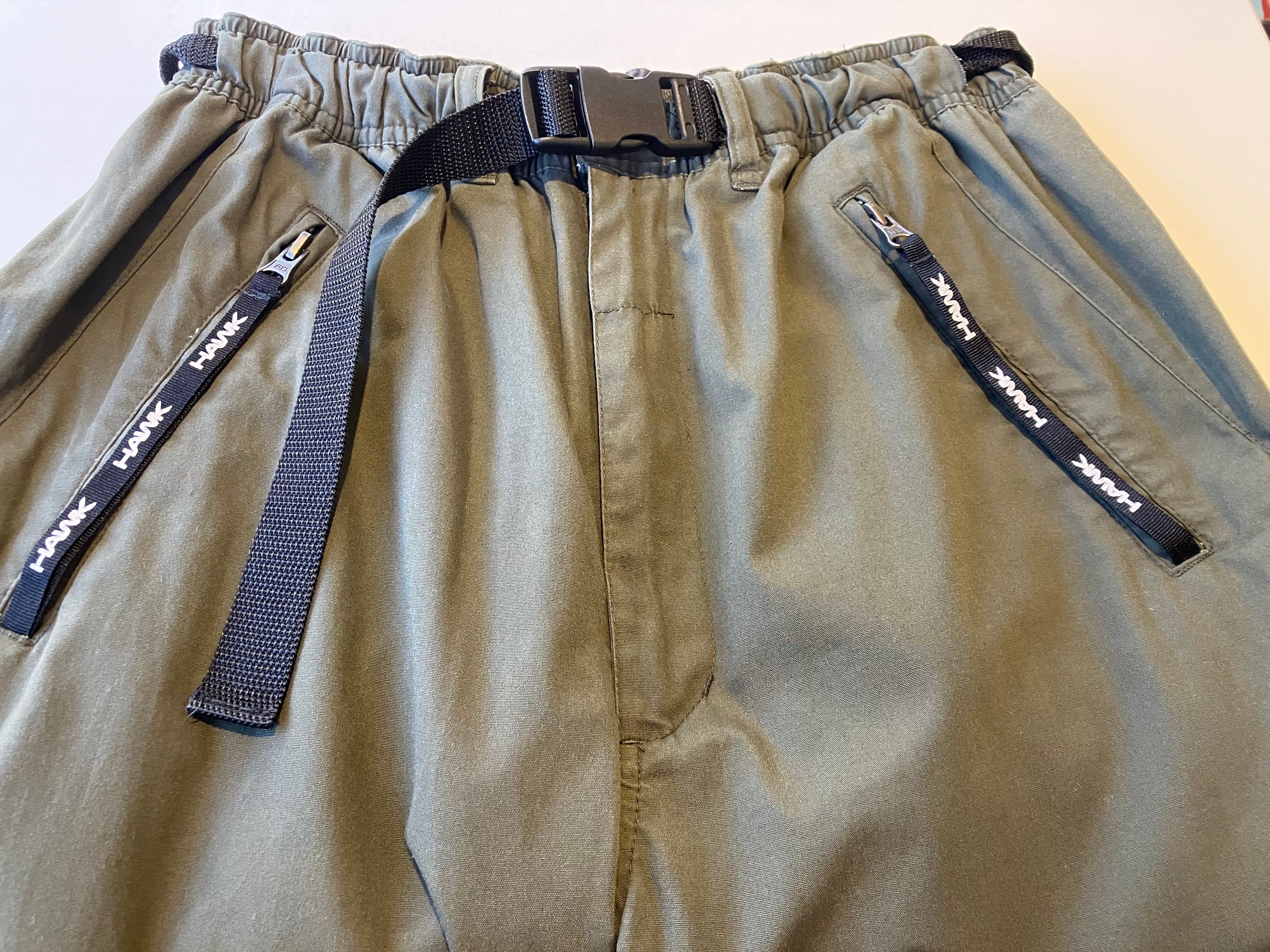 ウエストと裾はナイロンベルトとアジャスターでサイズとシルエット調整可能なイージータイプ。ギミック満載のジップが付いてショーツにもなる優れモノ◎