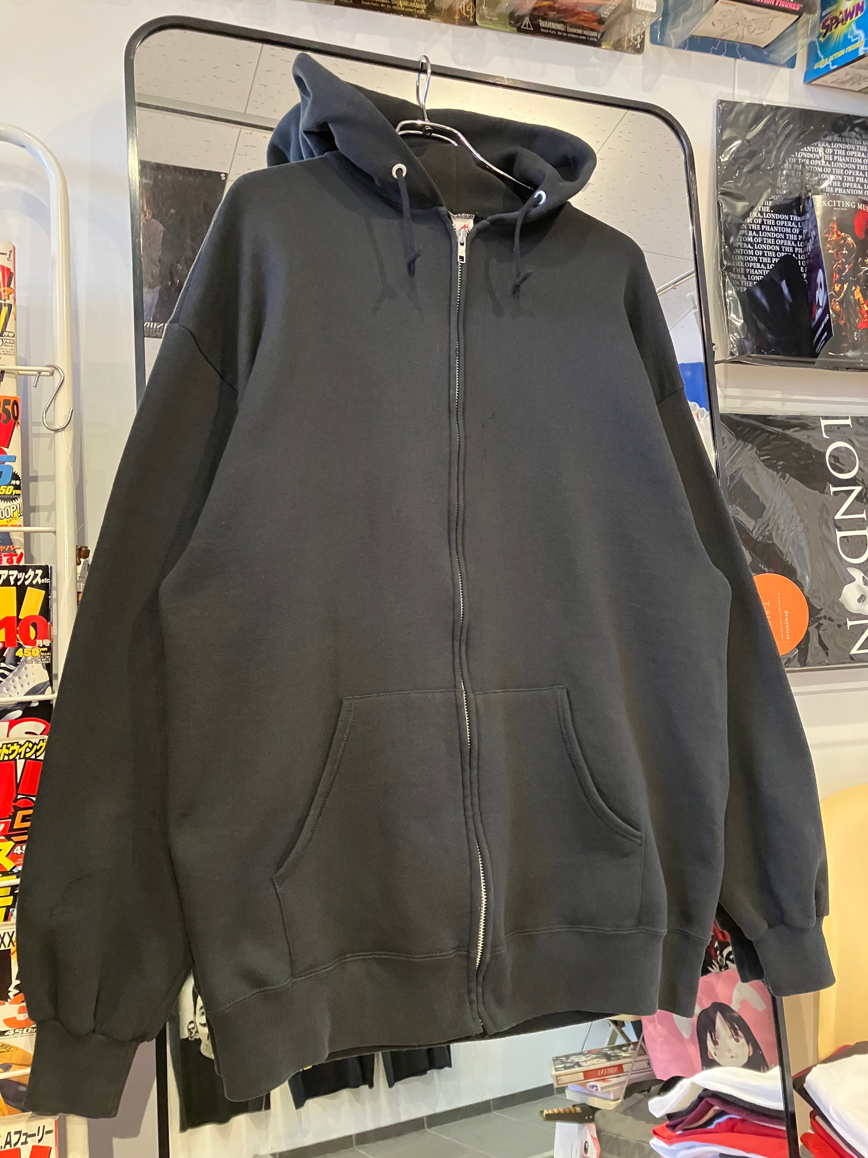 私的スペシャルから、JERZEE製のブラック無地のジップアップパーカーです。