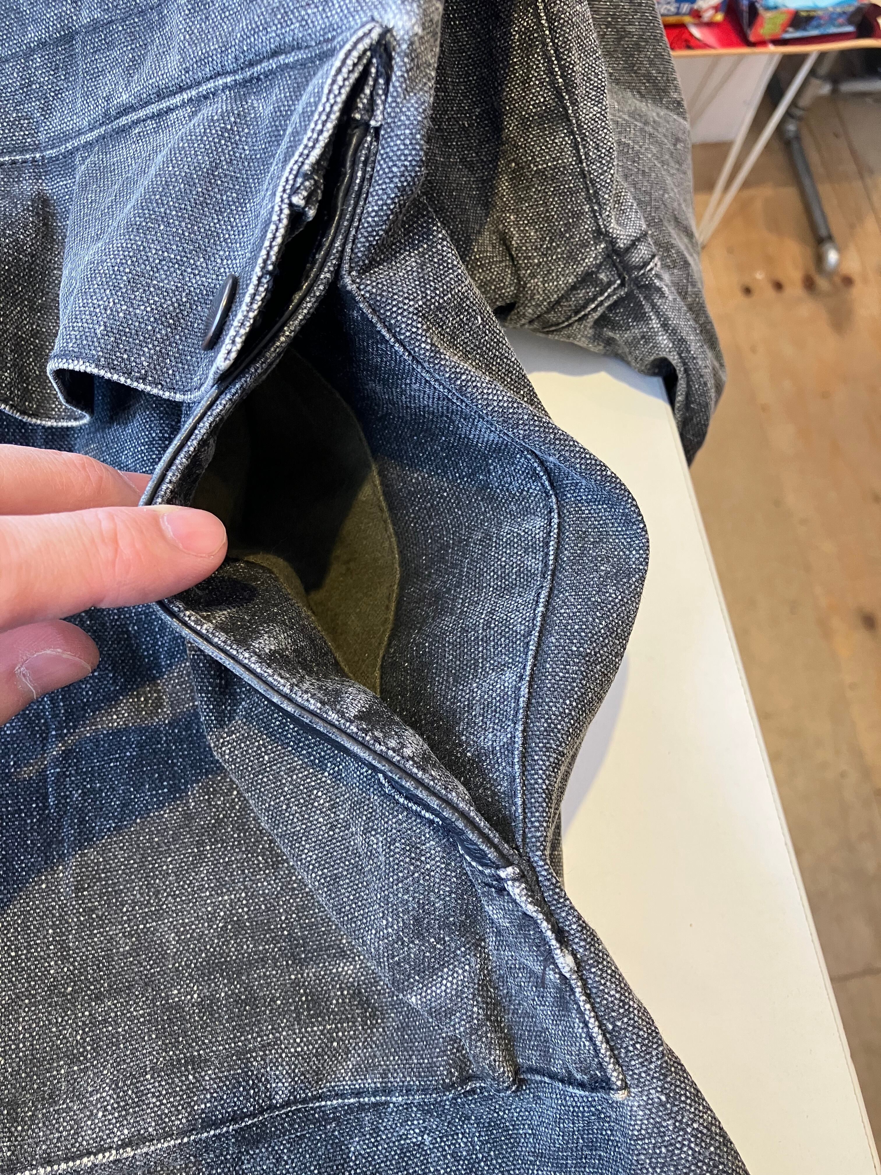 《condition》ポケット裏に小さなダメージがあります。着用には問題無いレベルかと思います。若干の使用感・画像のような汚れ、擦れはございますが、古着慣れされた方であれば問題なく着用可能なユーズドコンディションです。
