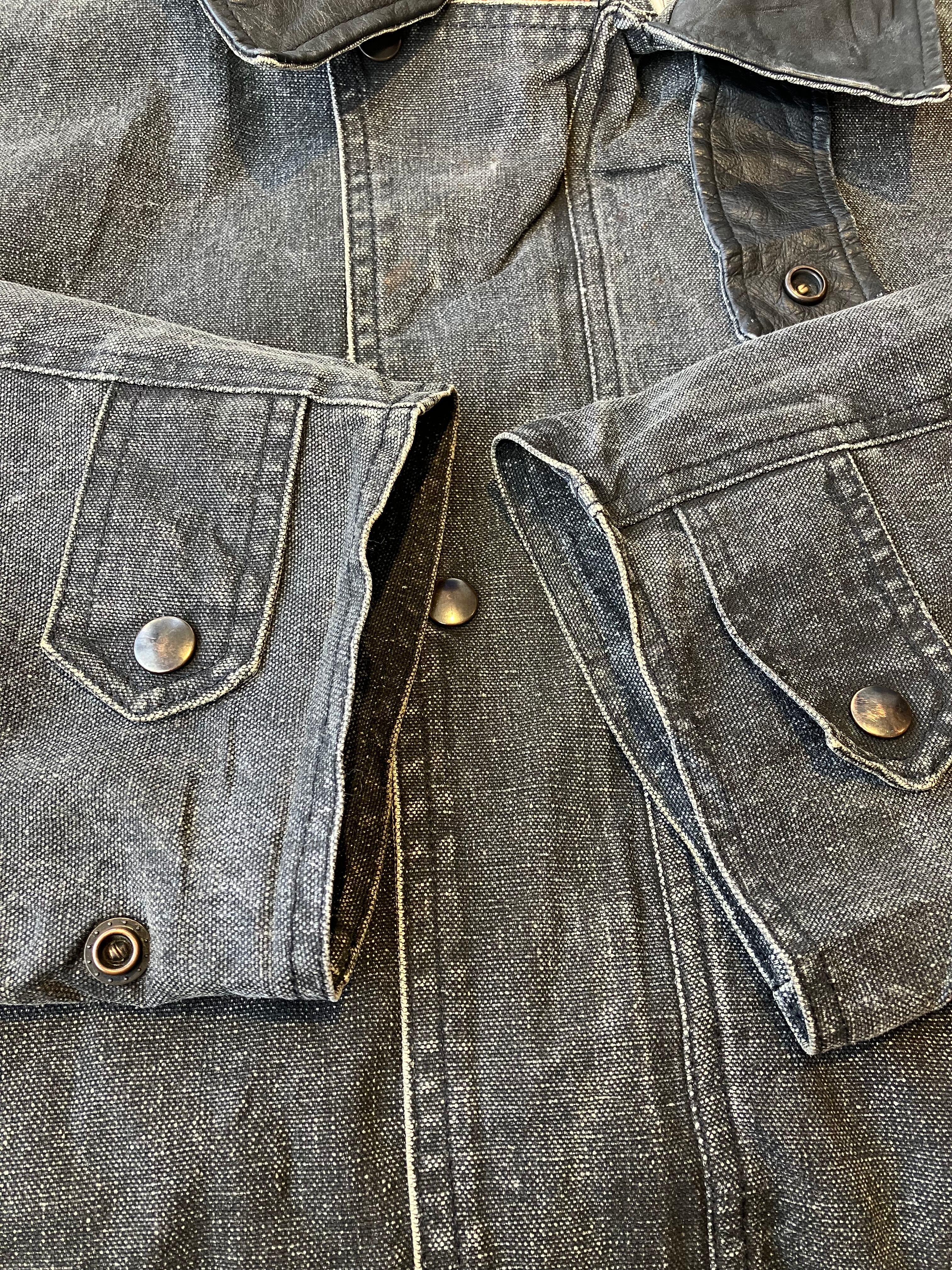 何よりザラっとした黒シャンみたいなブラックデニム地ハンティングって珍しい。襟レザーのゴツZIP 、細部までハイクオリティーな一枚です◎