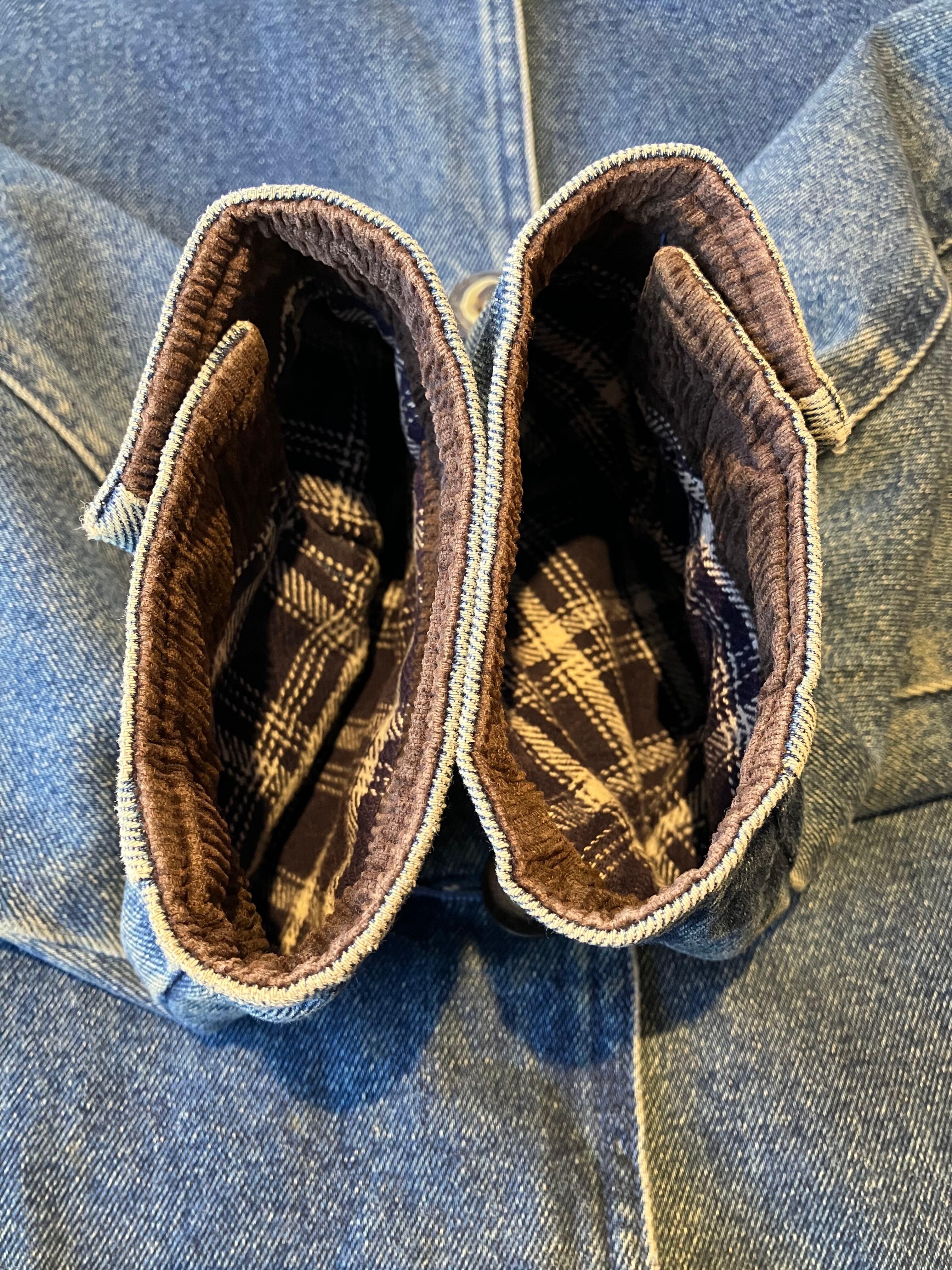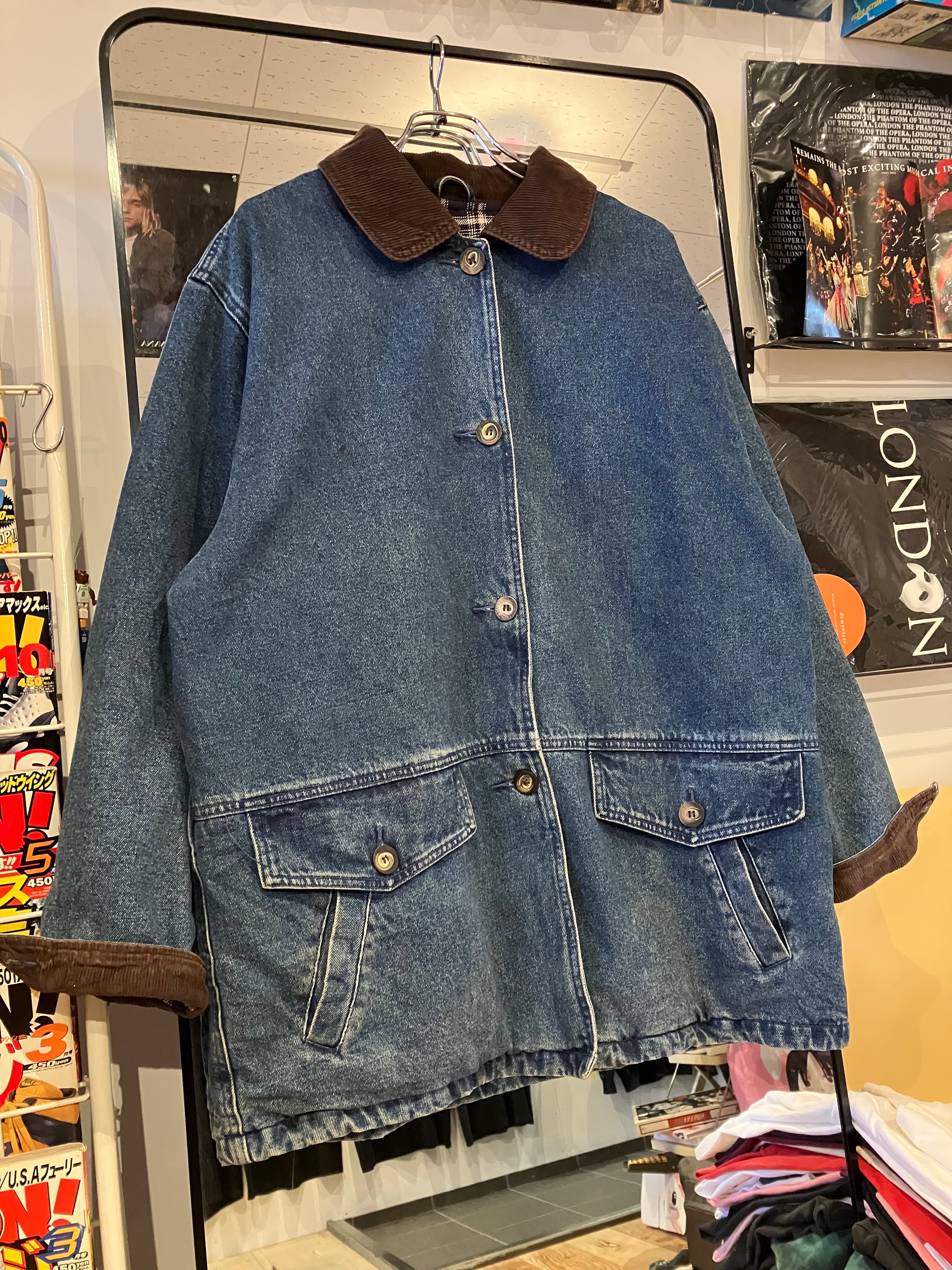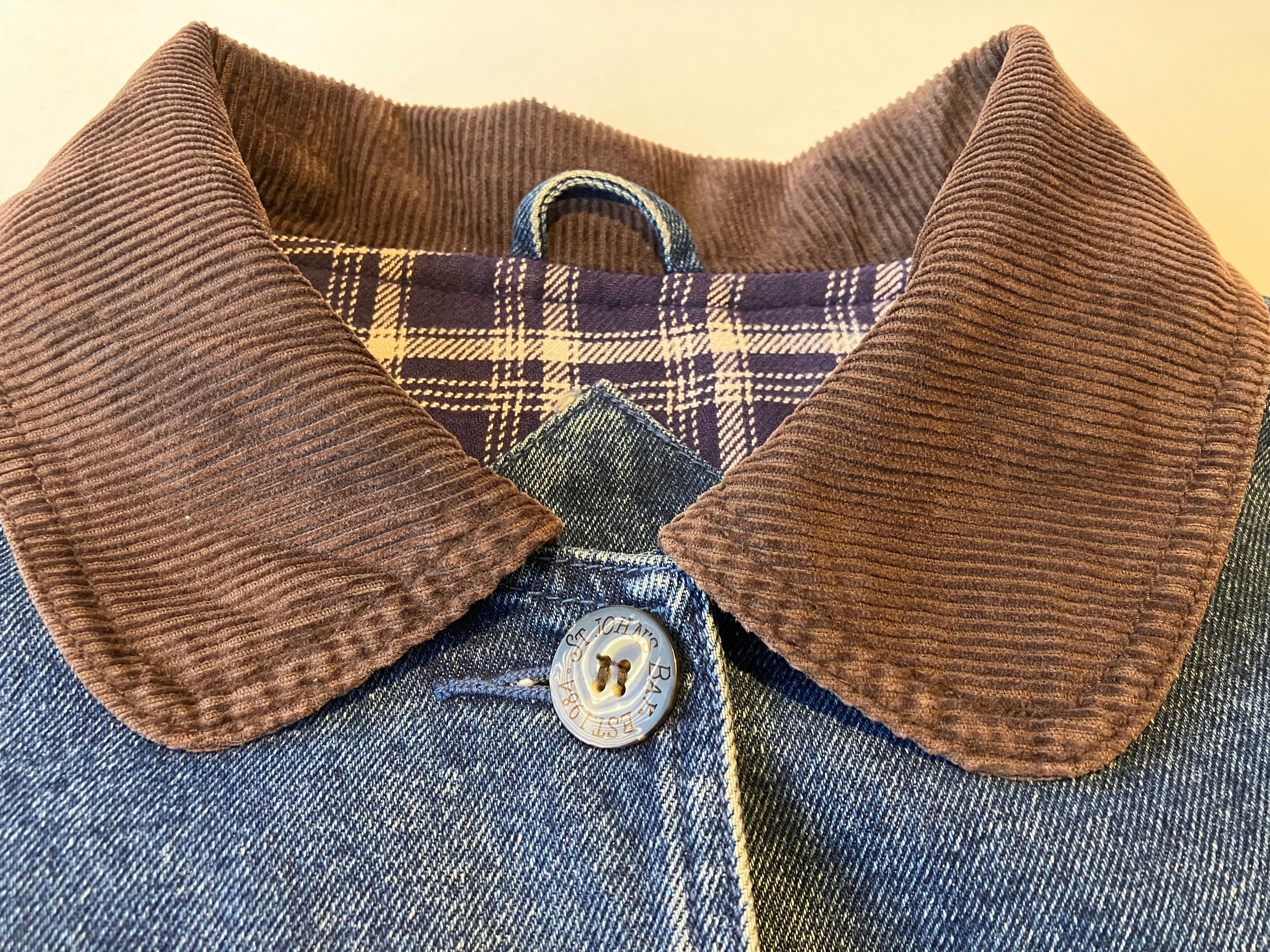 St. John's Bay 製デニムハンティングジャケットです。襟とカフスがコーデュロイの切り替えしで、高級感ある一枚◎
