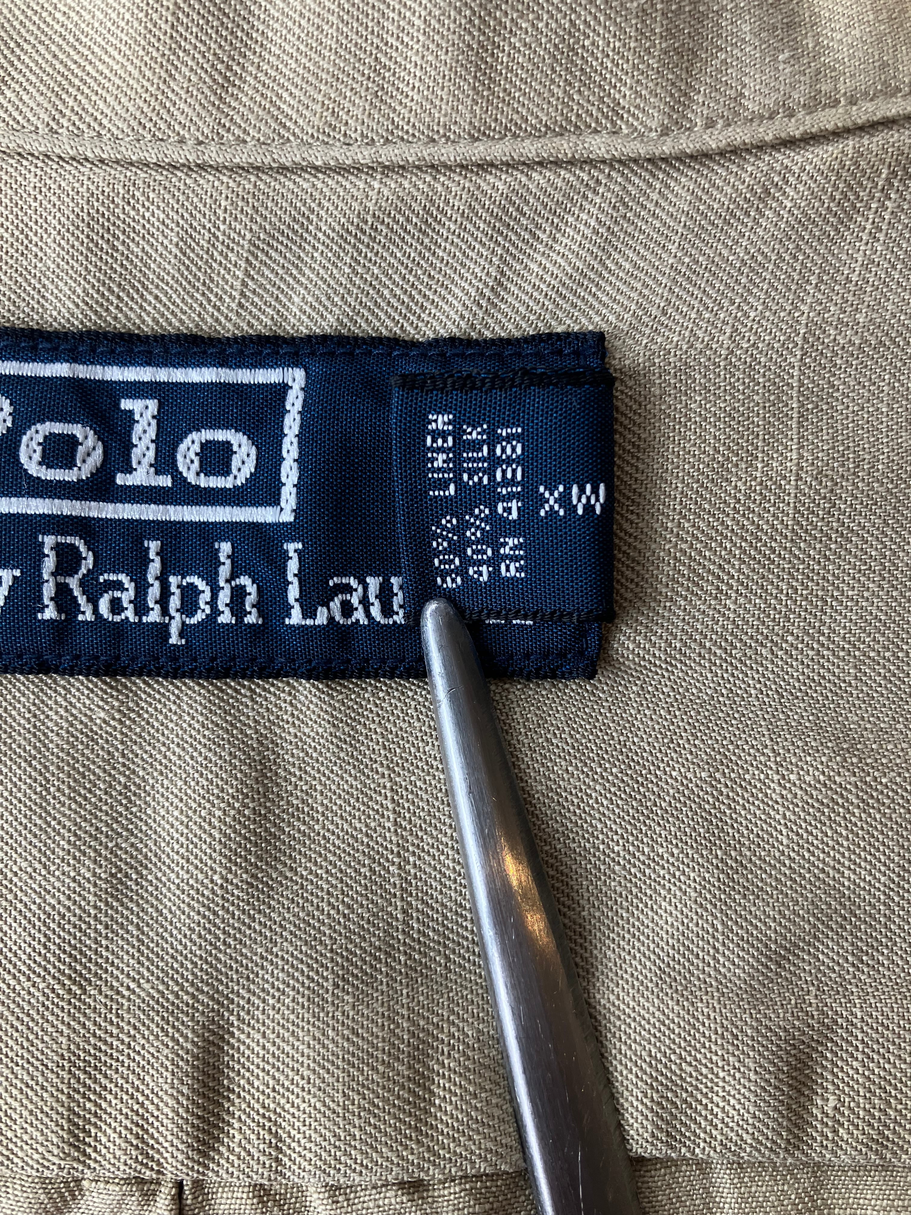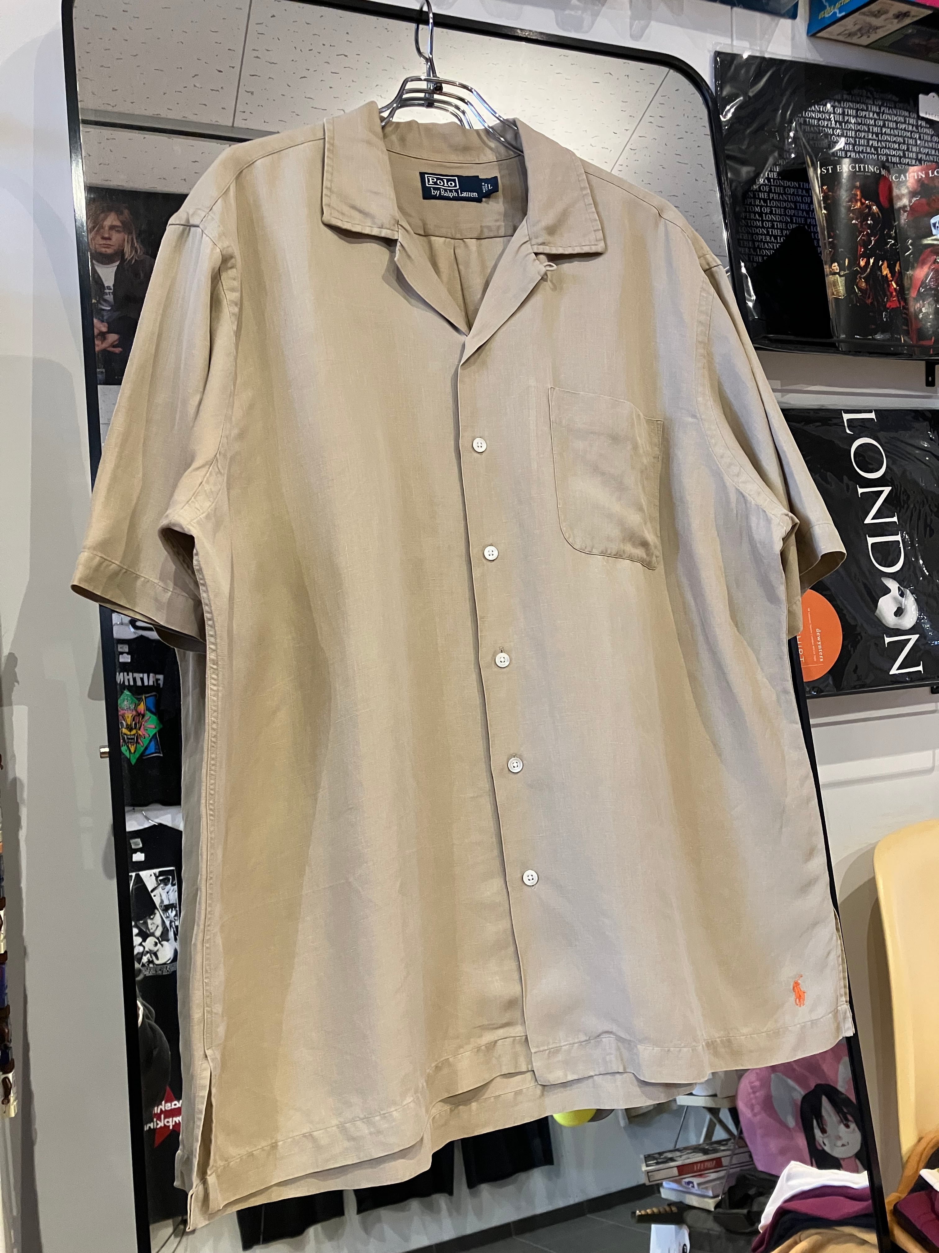 90年代の Ralph Lauren の中でも流通量が非常に少ない、リネン×シルク素材のオープンカラーシャツ。