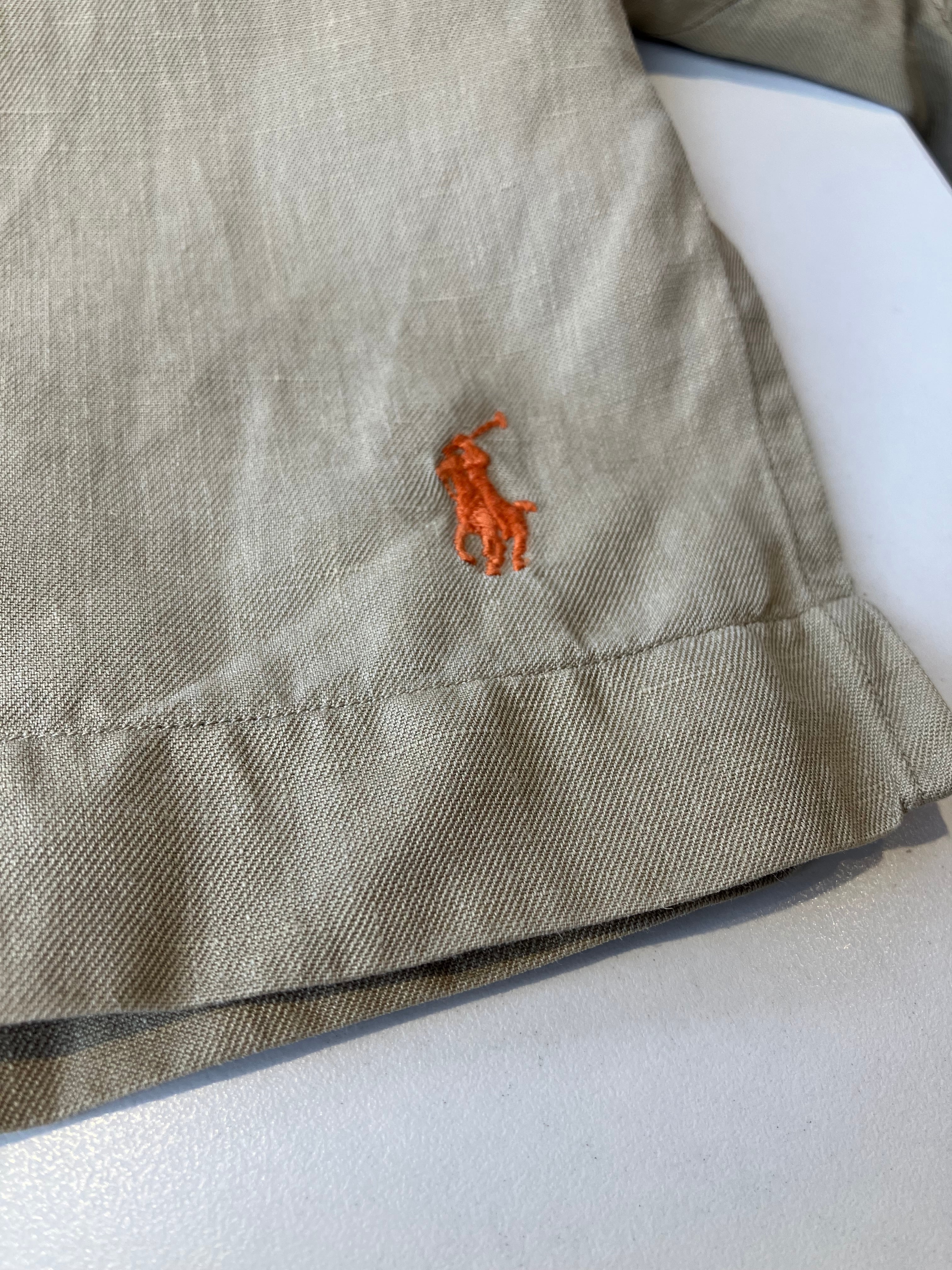 90's Ralph Lauren Linen × Silk Open Collar Shirt “裾ポニー" (SIZE L)