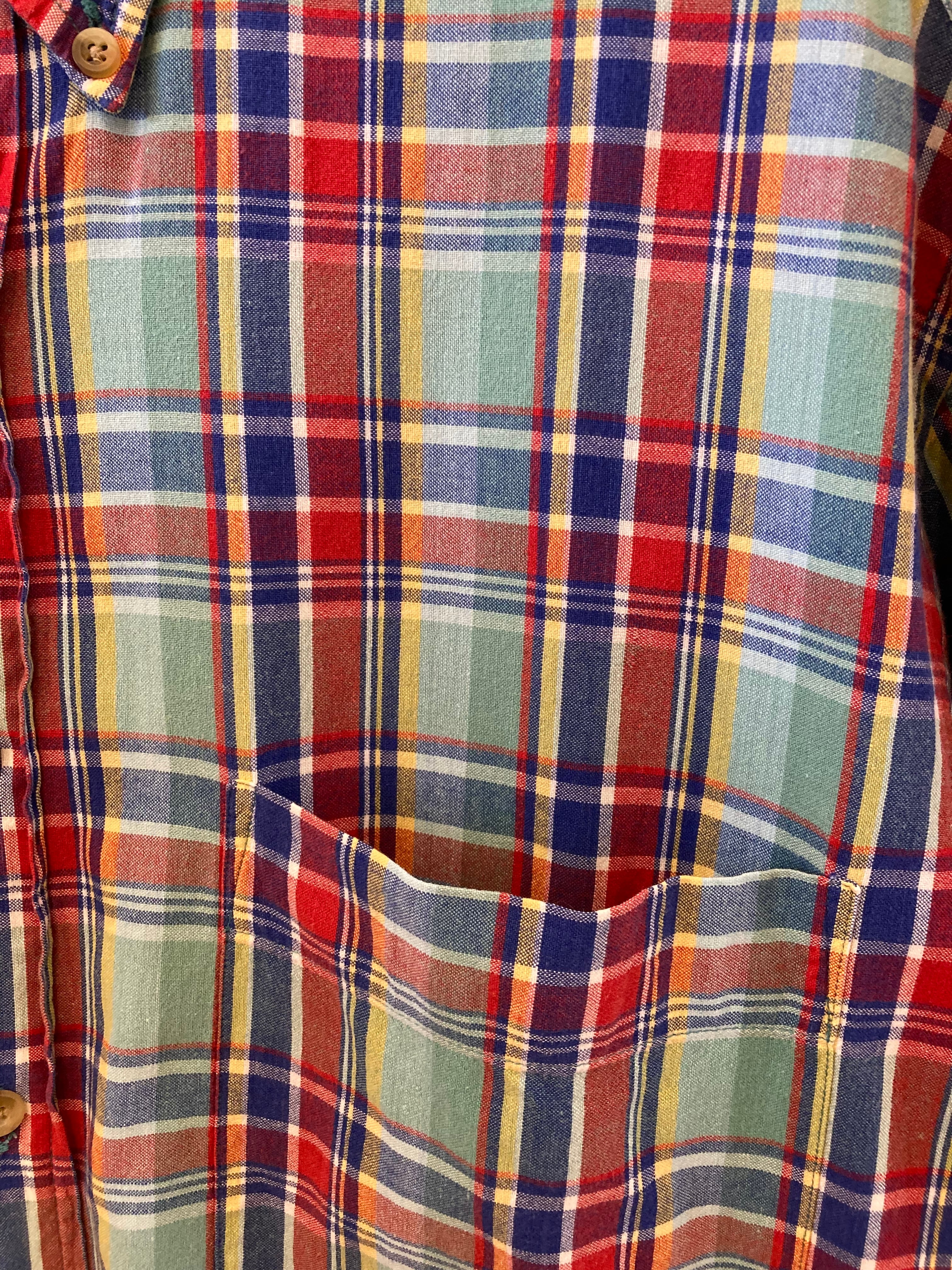 グッドレギュラー半袖シャツからLANDS' END製のマドラスチェックをプッシュ!!これぞ王道にして至高の一枚って感じの好配色ですね。持っていて損はしない半袖シャツ。