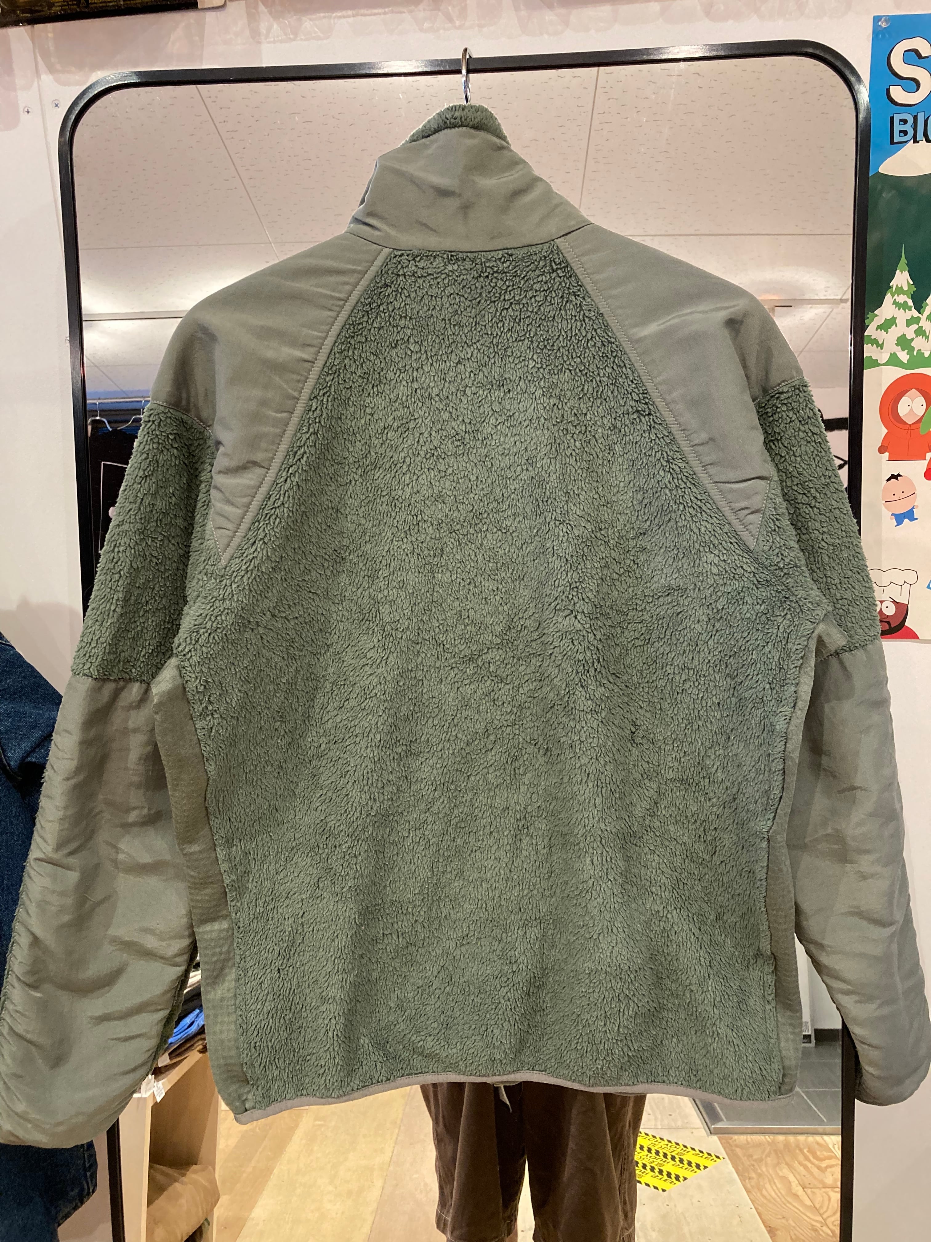 80年代後半から採用された米軍独自のレイヤリングシステムを持つECWCS(Extended Cold Weather Clothing System/極寒冷地用システム)のフリース製ライナーです。パタゴニアやノースフェイスのようなアウトドアブランドの商品に近いアクティブなデザイン!肩回り、袖肘から下は摩耗を防ぐナイロンとの二重構造。
