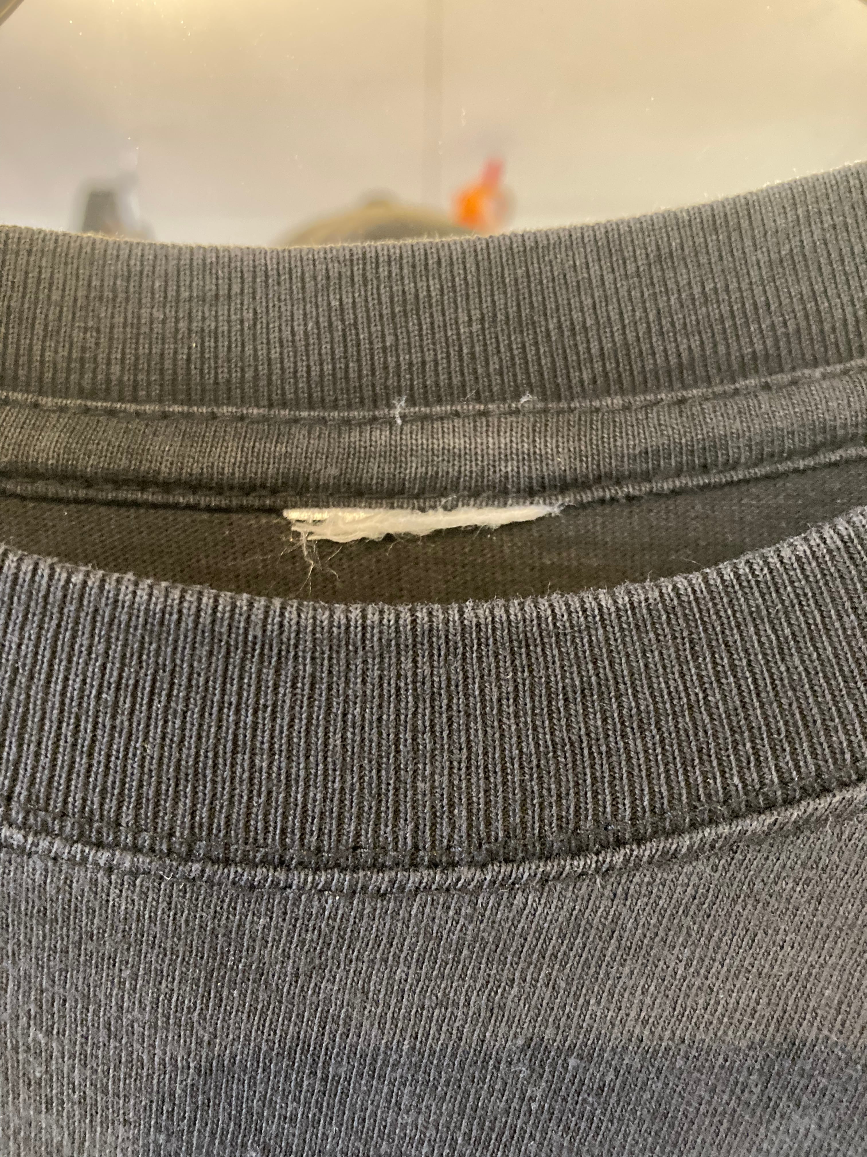 《condition》ネックリブ付近、フロント裾部分に写真の様な目立たない程度のピンホールがあります。使用感・画像のような擦れはございますが、古着慣れされた方であれば問題なく着用可能なユーズドコンディションです。