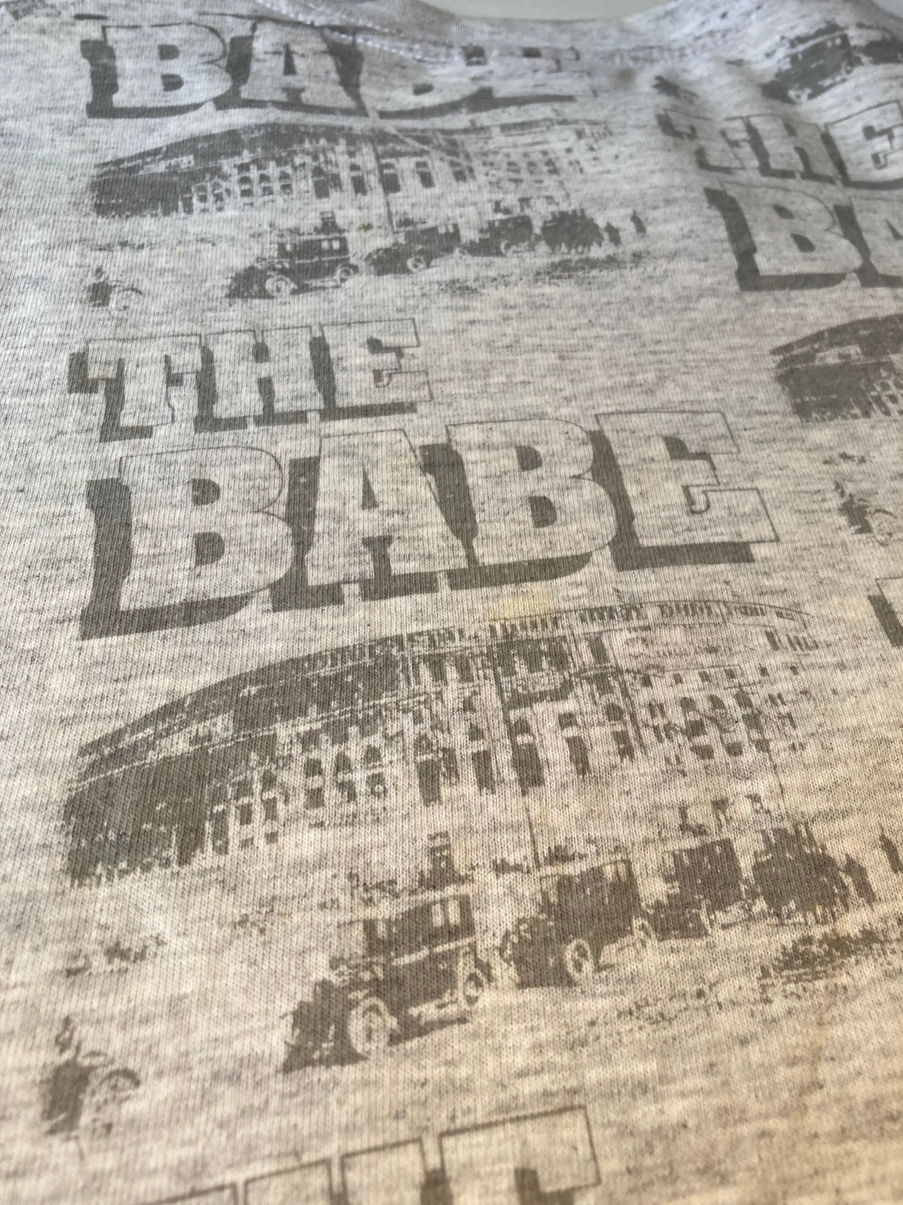 総柄Tシャツと言えば!お馴染みベーブ・ルースのTシャツ。昔はよく見かけましたが、この辺りもめっきり出会えなくなりましたね。この硬球の陰影とか凄い好きな手法です。