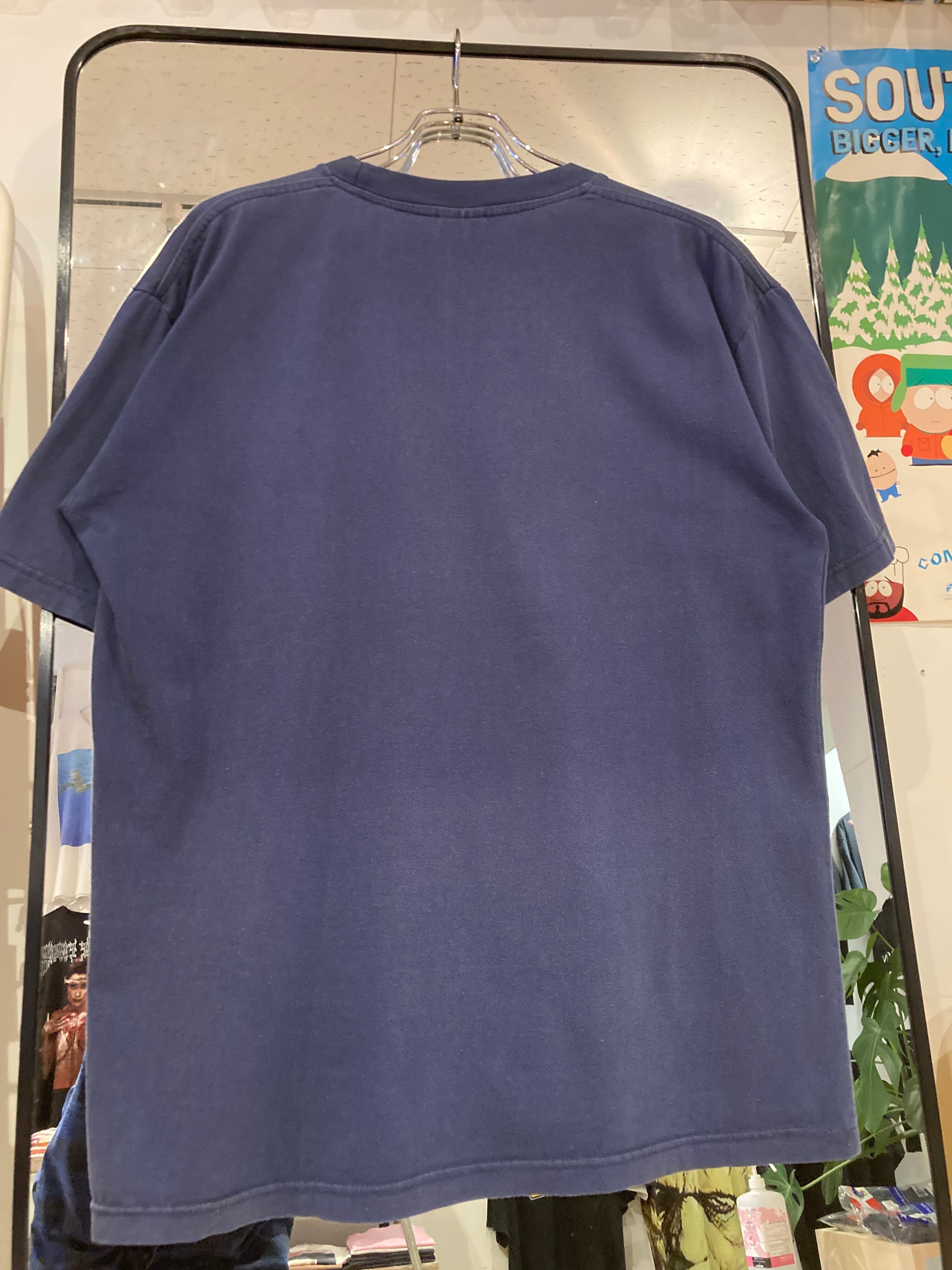 話が逸れました。彼等のテーマカラーと言えば勿論ブラック。この作品のTシャツはほぼ黒で間違い無いんですが、稀少なネイビーボディーを使った一枚。バンドTでは余ったヤツに刷ったりする事もありますが、とにかく珍しいパターン。