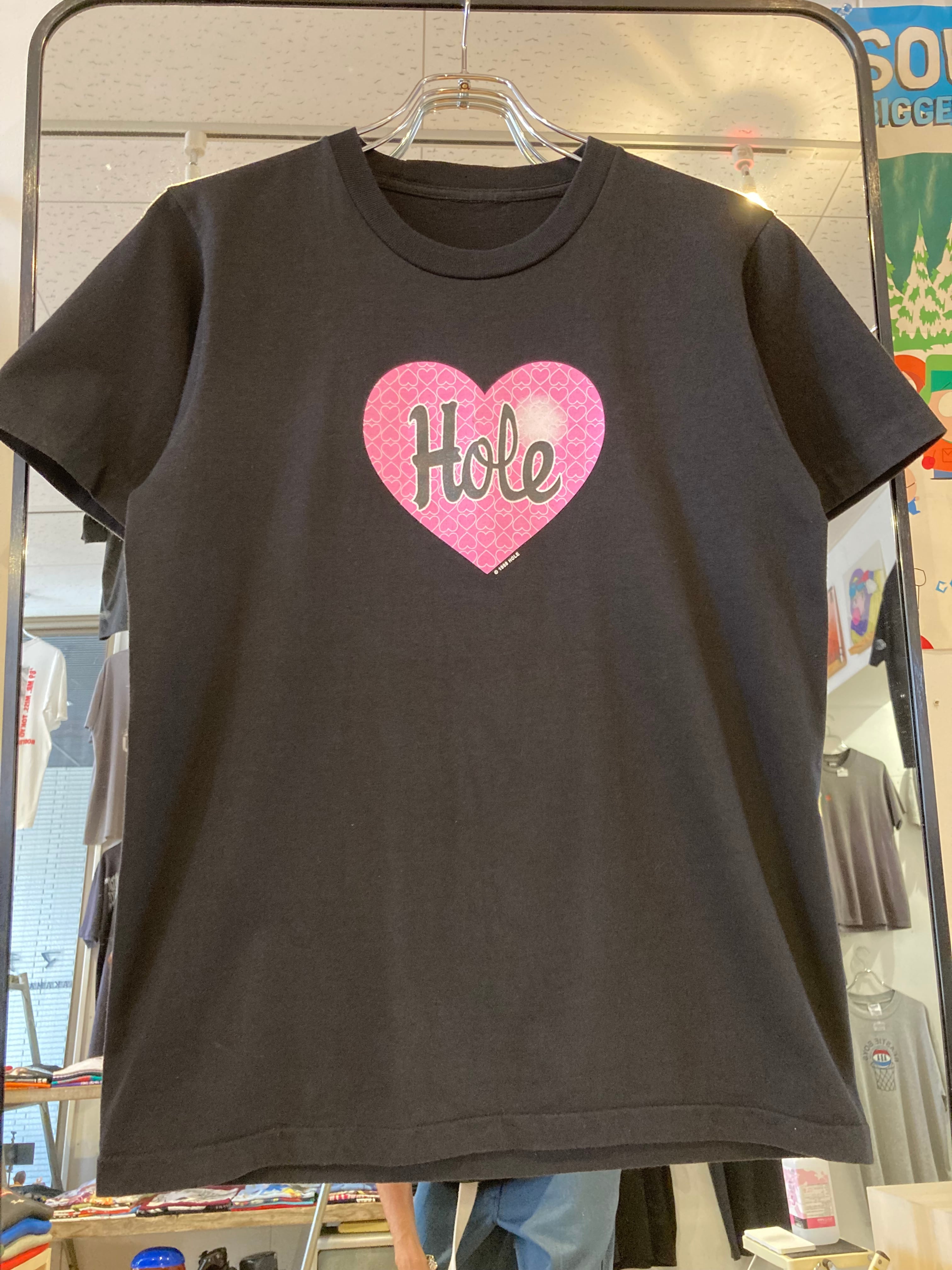 コートニー・ラブ率いるオルタナティヴ・ロック・バンド、HOLEのTシャツです!!何かとカートの妻で…と言われがちですが、コートニー・ラヴのミュージシャンとしてのキャリアは、80年代にFaith No Moreのヴォーカルを勤めたり、L7やBabes In Toylandのメンバーとつるんでいたことがありましたが、89年にLAでHoleを結成しスタート。90年代には世界的な人気を誇るバンドに成長しました。