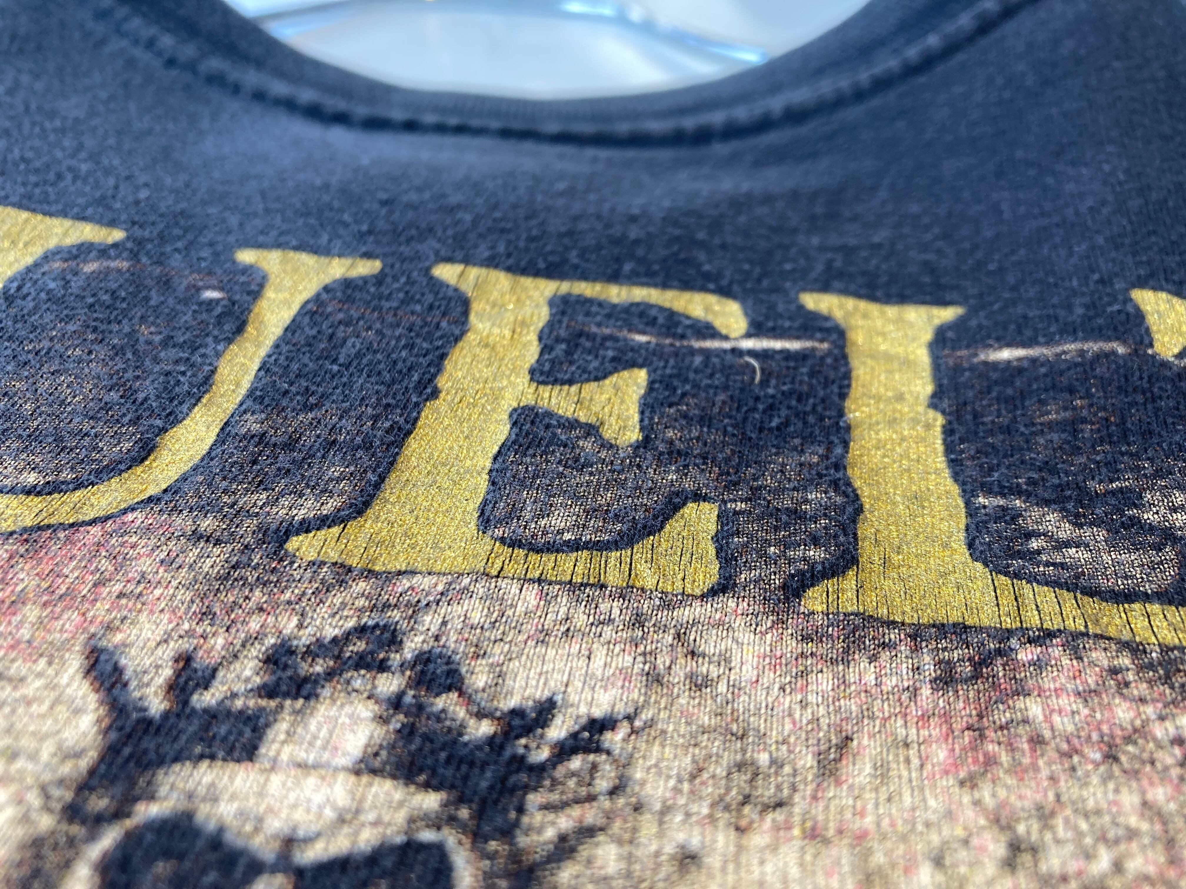 フィルスといえば過激なデザインなイメージですが、こちらのTシャツも例に漏れず独特な雰囲気を放っています。何故かと言うと、この3rdアルバムジャケット(このデザイン)は16世紀のトランシルヴァニア公国(現ハンガリー)に実在した、エリザベス・バソリー伯爵夫人を題材にしたコンセプトアルバムなんです。処女の生き血を浴びると永遠の若さを保てると信じ実行していたバソリー夫人。このコンセプトを忠実に表してるジャケット。ヤバいでしょう?そんなTシャツ。