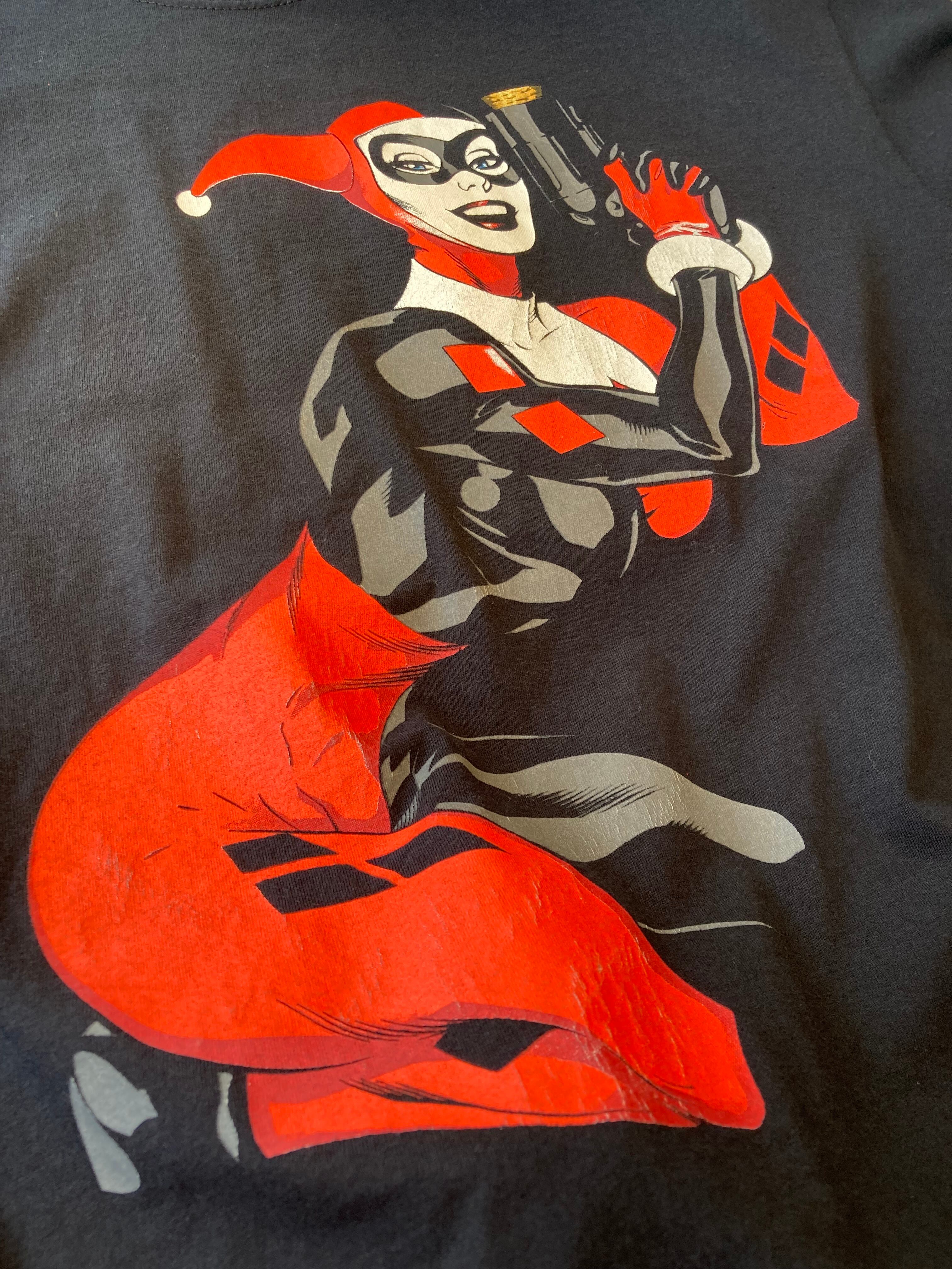 人気のバットマンシリーズからハーレイ・クインのTシャツが入荷しました。コミック版ハーレイクインの表紙にもなっている人気のデザインです。