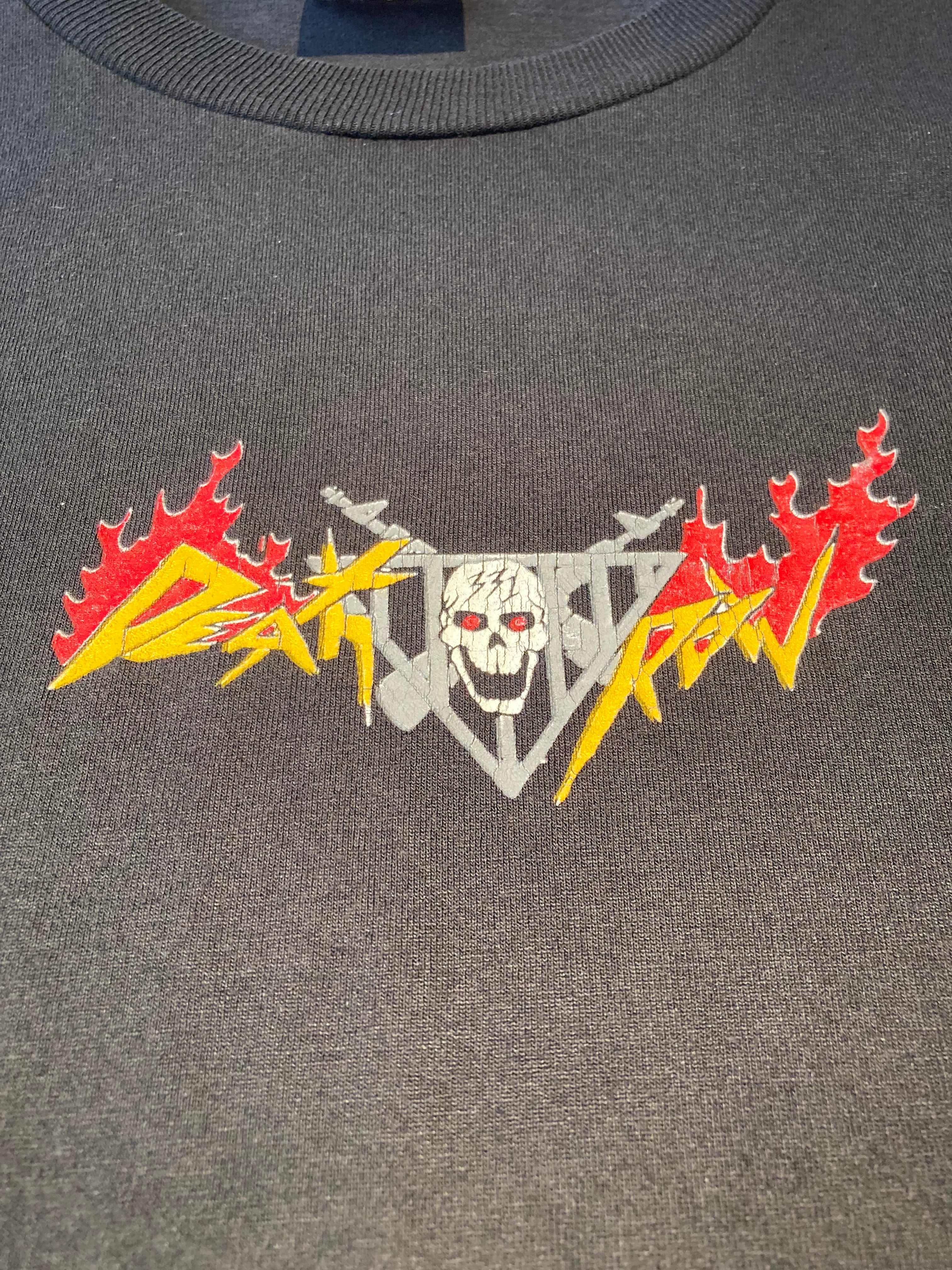 Death Row は死刑を宣告された者が執行を待つ刑務所の独房棟の意味。レコードレーベルではお馴染みのイラストですが、コチラはスカルの指揮官。めちゃくちゃ凝ったデザインかと。