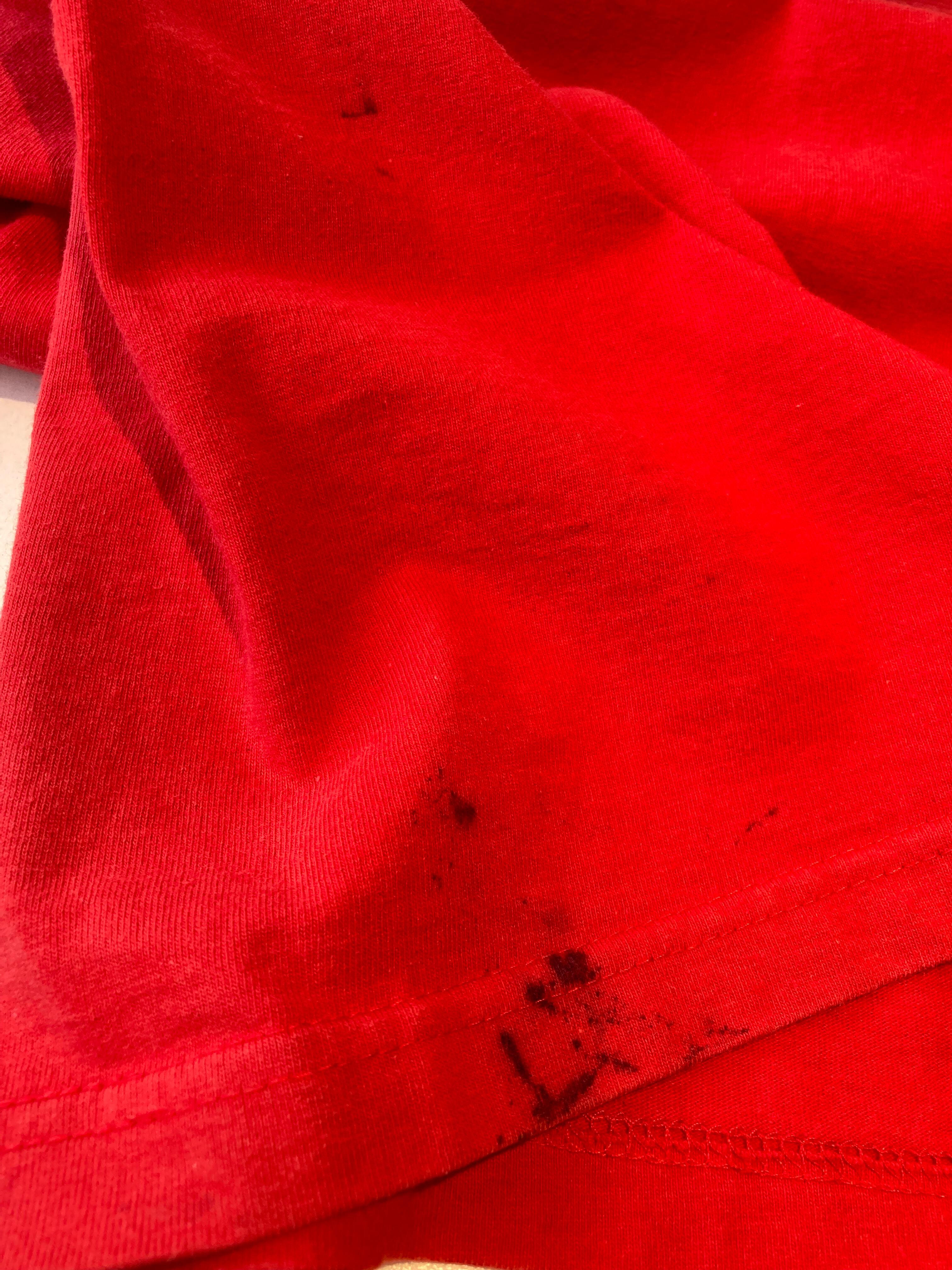 《condition》フロント裾付近に写真の様なインク汚れがあります。使用感・画像のような汚れ、擦れはございますが、古着慣れされた方であれば問題なく着用可能なユーズドコンディションです。