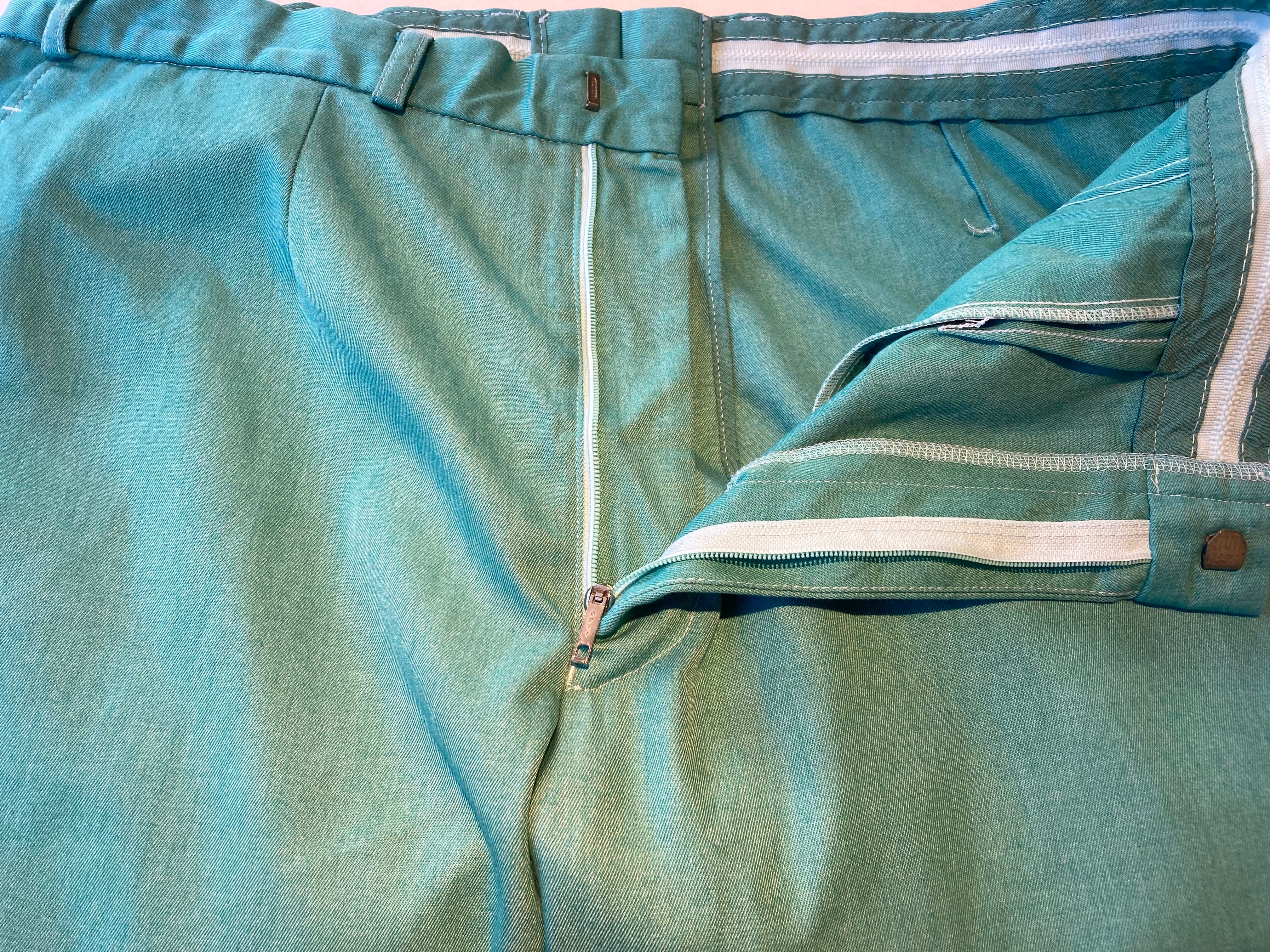たしかフレアとストレートの2種類が存在していた記憶があり、海軍かな?と。なので、U.S.NAVY のデッキパンツに近いシルエット。本来ならホワイトですが、以前の持ち主がティファニーブルーに染め上げています。自分でやる勇気はありませんが、最初からコレだと気軽に穿けますし、こんなパンツなかなか出ないですよ。